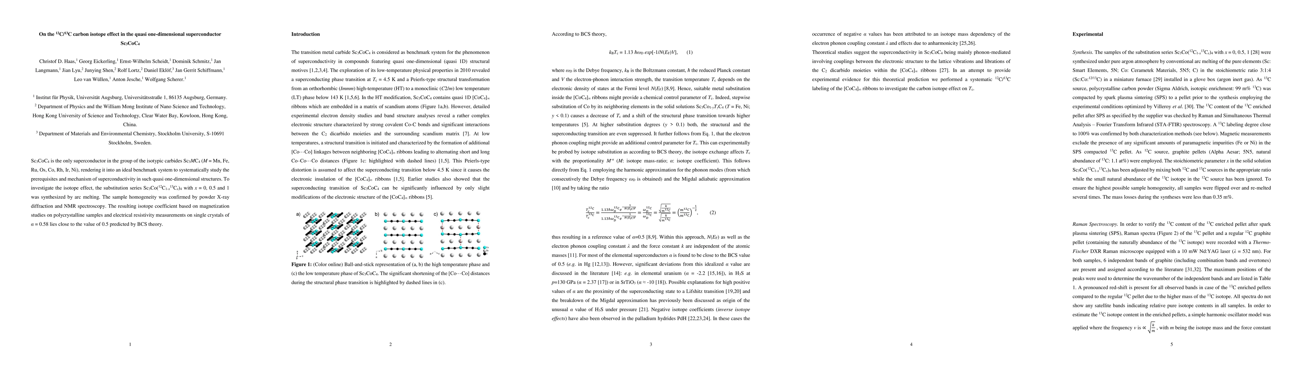 Researchers studied how replacing carbon isotopes affects superconductivity in the quasi-one-dimensional material Sc₃CoC₄. They found the isotope effect aligns closely with predictions from BCS theory, providing insight into the superconducting mechanism.