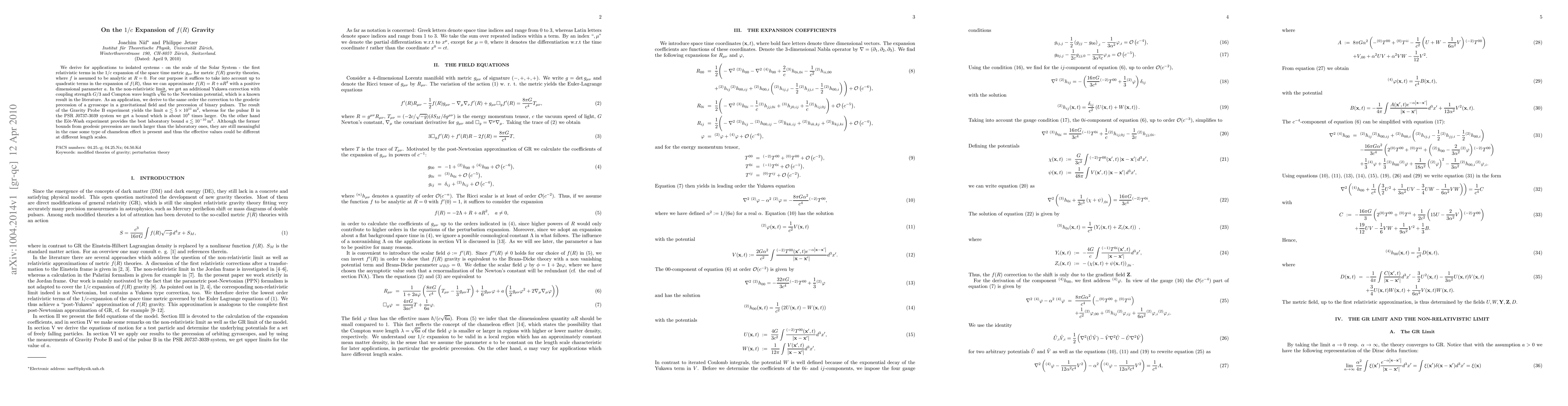 We derive for applications to isolated systems - on the scale of the Solar System - the first relativistic terms in the $1/c$ expansion of the space time metric $g_{\mu\nu}$ for metric $f(R)$ gravity theories, where $f$ is assumed to be analytic at $R=0$. For our purpose it suffices to take into account up to quadratic terms in the expansion of $f(R)$, thus we can approximate $f(R) = R + aR^2$ with a positive dimensional parameter $a$. In the non-relativistic limit, we get an additional Yukawa correction with coupling strength $G/3$ and Compton wave length $\sqrt{6a}$ to the Newtonian potential, which is a known result in the literature. As an application, we derive to the same order the correction to the geodetic precession of a gyroscope in a gravitational field and the precession of binary pulsars. The result of the Gravity Probe B experiment yields the limit $a \lesssim 5 \times 10^{11} \, \mathrm{m}^2$, whereas for the pulsar B in the PSR J0737-3039 system we get a bound which is about $10^4$ times larger. On the other hand the E\"ot-Wash experiment provides the best laboratory bound $a \lesssim 10^{-10} \, \mathrm{m}^2$. Although the former bounds from geodesic precession are much larger than the laboratory ones, they are still meaningful in the case some type of chameleon effect is present and thus the effective values could be different at different length scales.