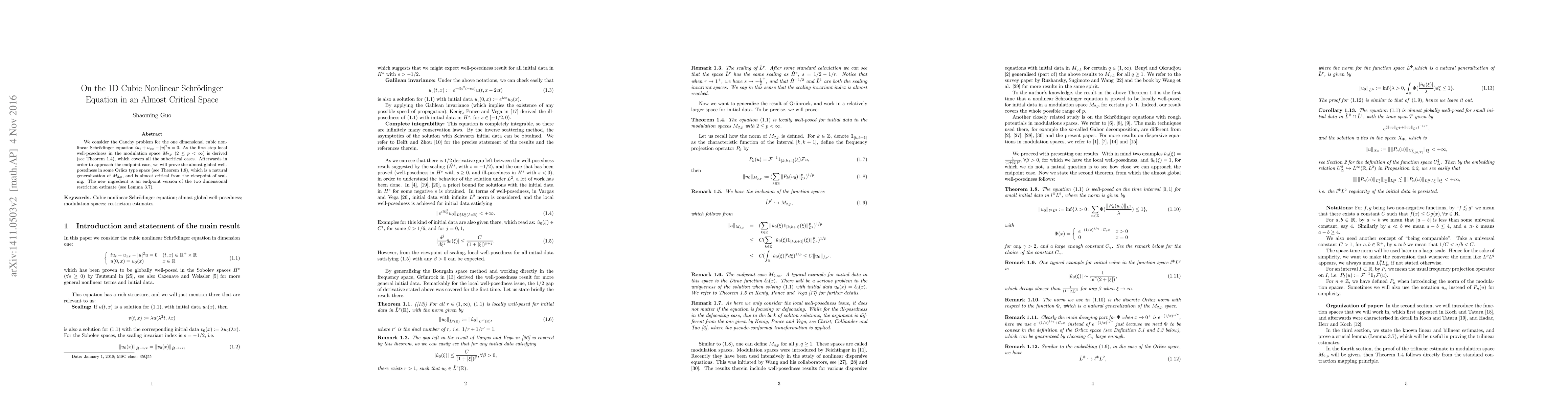 Researchers have proven local well-posedness of the 1D cubic nonlinear Schrödinger Equation for initial data in subcritical cases using a modulation space framework, and almost global well-posedness in an Orlicz-type space for large p.
