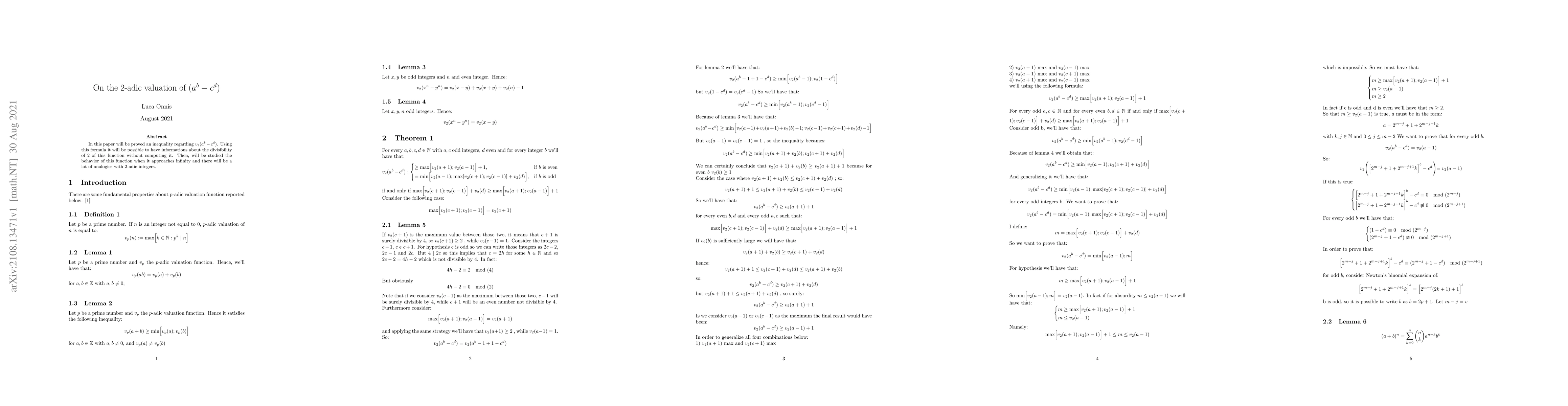 This paper proves an inequality for $v_2(a^{b}-c^{d})$, enabling insights into the 2-divisibility of the function without computation. It explores the behavior of the function as it approaches infinity, revealing analogies with 2-adic integers, and highlights its utility in informatics due to its relation to the binary system.