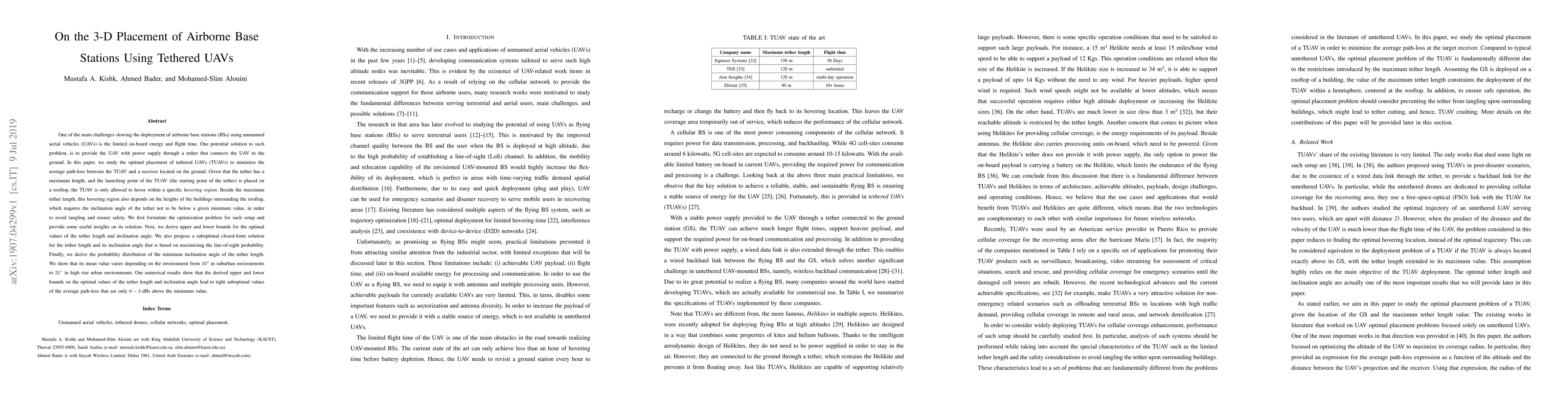 One of the main challenges slowing the deployment of airborne base stations (BSs) using unmanned aerial vehicles (UAVs) is the limited on-board energy and flight time. One potential solution to such problem, is to provide the UAV with power supply through a tether that connects the UAV to the ground. In this paper, we study the optimal placement of tethered UAVs (TUAVs) to minimize the average path-loss between the TUAV and a receiver located on the ground. Given that the tether has a maximum length, and the launching point of the TUAV (the starting point of the tether) is placed on a rooftop, the TUAV is only allowed to hover within a specific hovering region. Beside the maximum tether length, this hovering region also depends on the heights of the buildings surrounding the rooftop, which requires the inclination angle of the tether not to be below a given minimum value, in order to avoid tangling and ensure safety. We first formulate the optimization problem for such setup and provide some useful insights on its solution. Next, we derive upper and lower bounds for the optimal values of the tether length and inclination angle. We also propose a suboptimal closed-form solution for the tether length and its inclination angle that is based on maximizing the line-of-sight probability. Finally, we derive the probability distribution of the minimum inclination angle of the tether length. We show that its mean value varies depending on the environment from 10 degrees in suburban environments to 31 degrees in high rise urban environments. Our numerical results show that the derived upper and lower bounds on the optimal values of the tether length and inclination angle lead to tight suboptimal values of the average path-loss that are only 0-3 dBs above the minimum value.