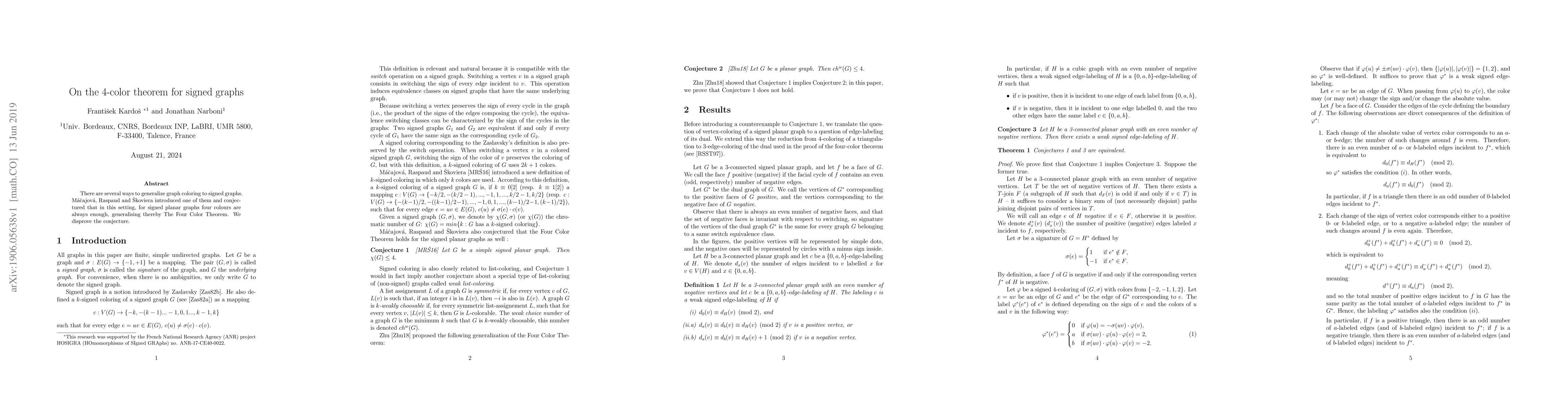 This paper disproves the conjecture that four colors are sufficient to color signed planar graphs, a generalization of the Four Color Theorem for signed graphs introduced by Máčajová, Raspaud, and Škoviera.