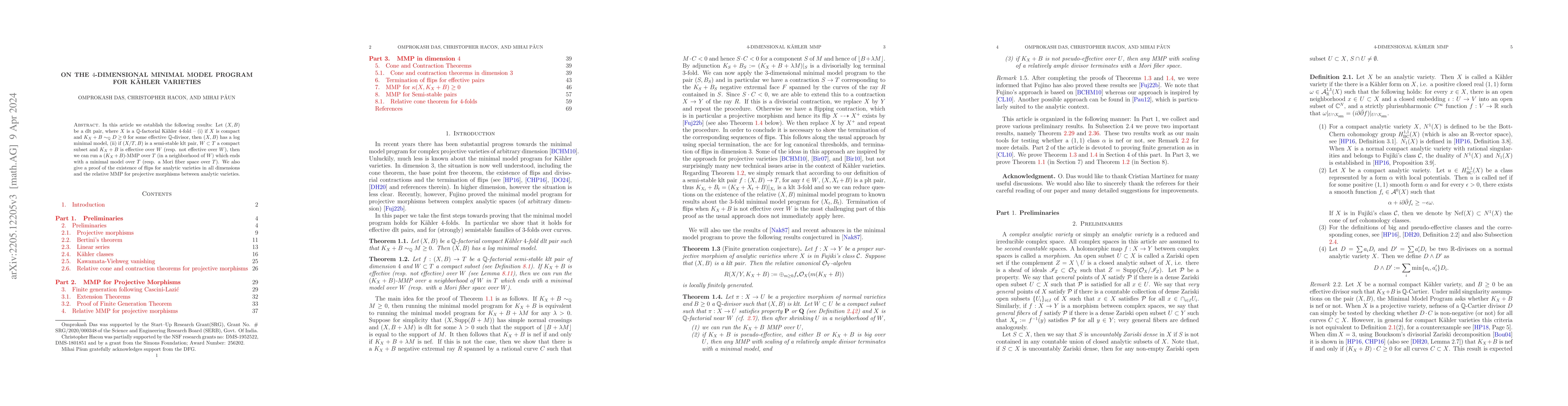 In this article we establish the following results: Let $(X, B)$ be a dlt pair, where $X$ is a $\mathbb Q$-factorial K\"ahler $4$-fold -- (i) if $X$ is compact and $K_X+B\sim_{\mathbb Q} D\geq 0$ for some effective $\mathbb Q$-divisor, then $(X, B)$ has a log minimal model, (ii) if $(X/T, B)$ is a semi-stable klt pair, $W\subset T$ a compact subset and $K_X+B$ is effective over $W$ (resp. not effective over $W$), then we can run a $(K_X+B)$-MMP over $T$ (in a neighborhood of $W$) which ends with a minimal model over $T$ (resp. a Mori fiber space over $T$). We also give a proof of the existence of flips for analytic varieties in all dimensions and the relative MMP for projective morphisms between analytic varieties.