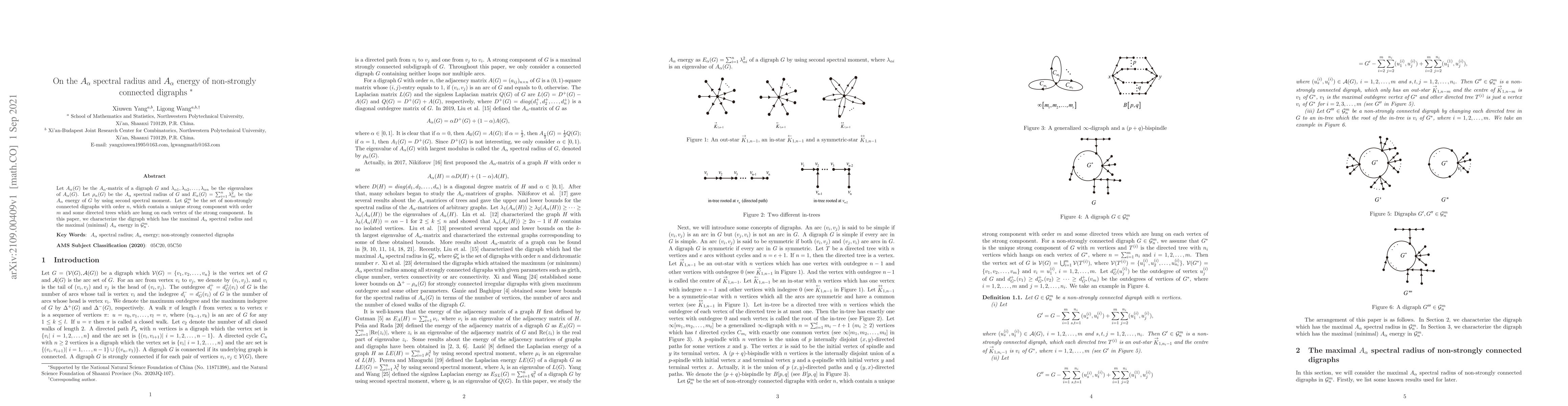 Let $A_\alpha(G)$ be the $A_\alpha$-matrix of a digraph $G$ and $\lambda_{\alpha 1}, \lambda_{\alpha 2}, \ldots, \lambda_{\alpha n}$ be the eigenvalues of $A_\alpha(G)$. Let $\rho_\alpha(G)$ be the $A_\alpha$ spectral radius of $G$ and $E_\alpha(G)=\sum_{i=1}^n \lambda_{\alpha i}^2$ be the $A_\alpha$ energy of $G$ by using second spectral moment. Let $\mathcal{G}_n^m$ be the set of non-strongly connected digraphs with order $n$, which contain a unique strong component with order $m$ and some directed trees which are hung on each vertex of the strong component. In this paper, we characterize the digraph which has the maximal $A_\alpha$ spectral radius and the maximal (minimal) $A_\alpha$ energy in $\mathcal{G}_n^m$.