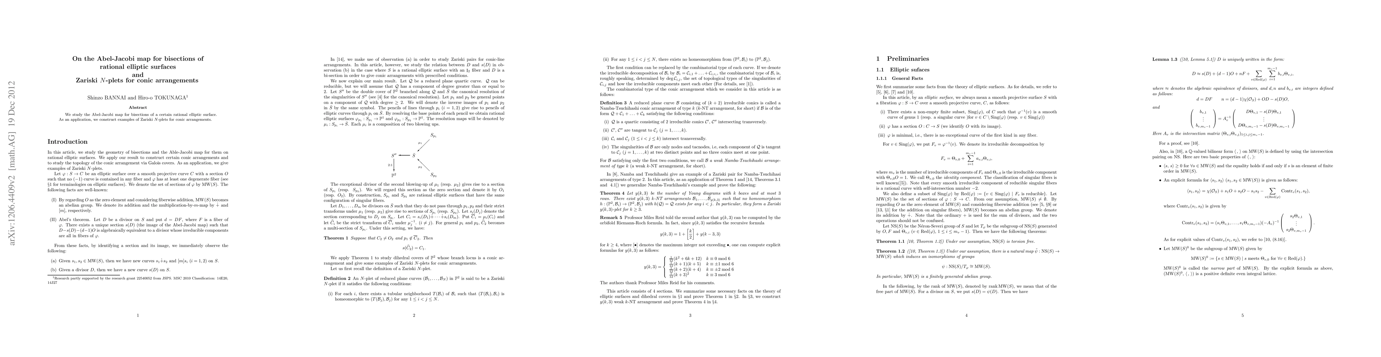 Summary: This paper investigates the Abel-Jacobi map for bisections of rational elliptic surfaces and applies the findings to construct Zariski $N$-plets for conic arrangements. The study provides new examples of Zariski $N$-plets.
