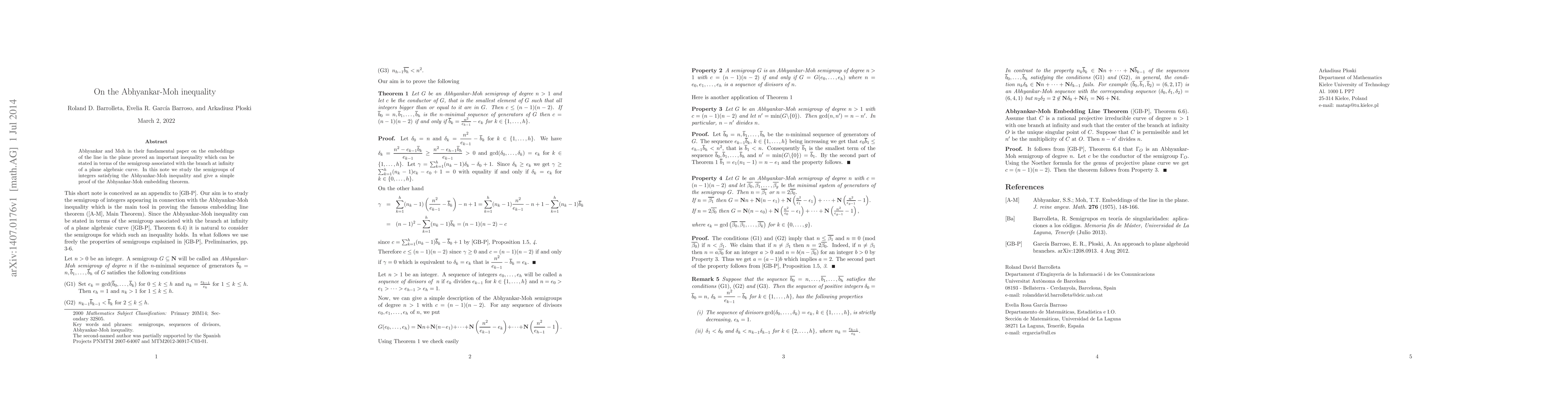 This research investigates the semigroups of integers that adhere to the Abhyankar-Moh inequality and provides a straightforward proof of the Abhyankar-Moh embedding theorem regarding the embeddings of the line in the plane.