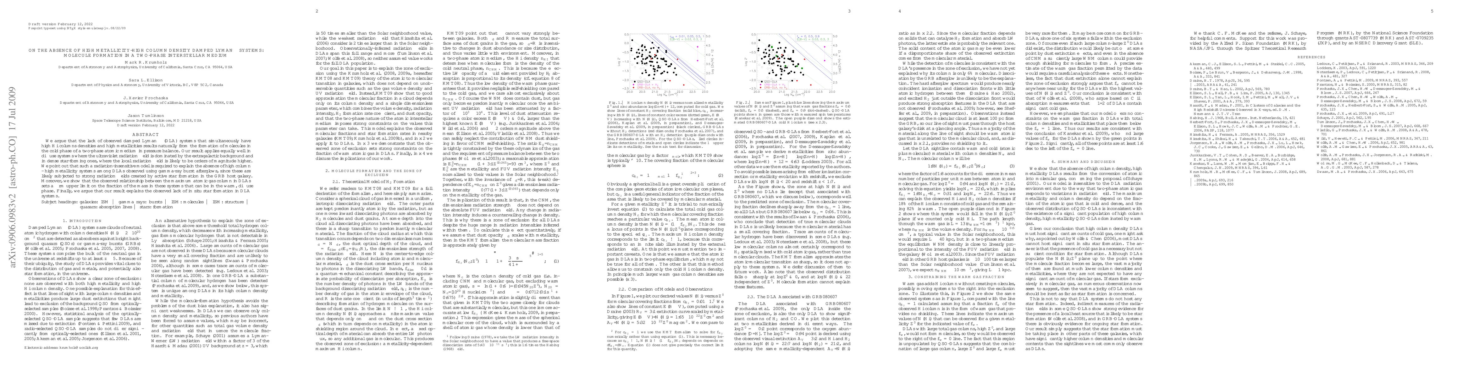 This paper posits that the absence of damped Lyman alpha systems with high HI column densities and high metallicities is due to molecule formation in the cold phase of a two-phase interstellar medium. It argues that this model, which is radiation-insensitive, explains the lack of such systems in both diffuse and dense star-forming environments.