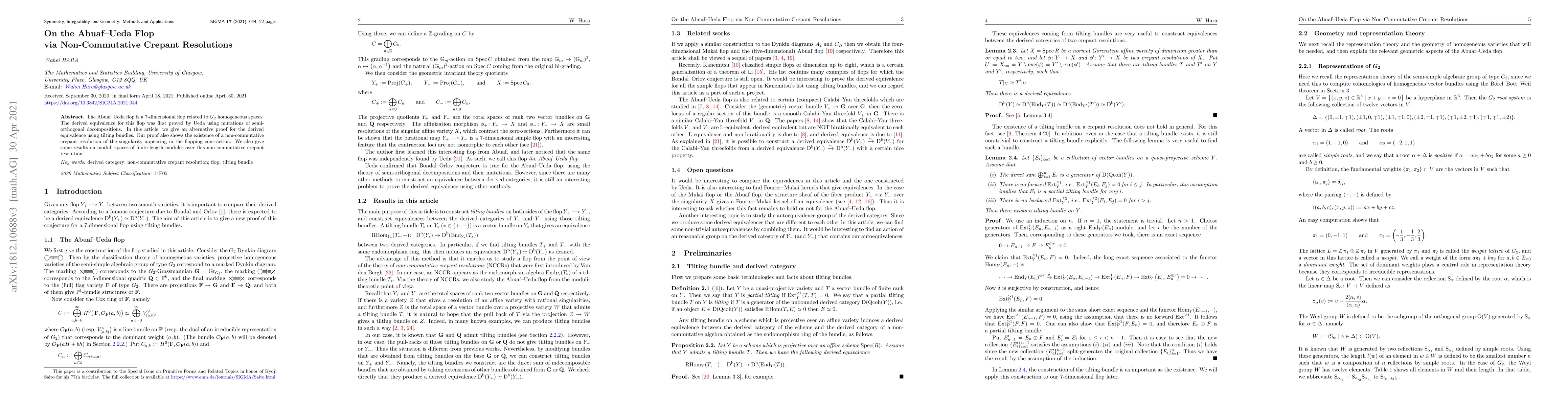 This paper provides an alternative proof for the derived equivalence of the Abuaf-Ueda flop using tilting bundles, and demonstrates the existence of a non-commutative crepant resolution for the singularity in the flopping contraction, along with results on moduli spaces of finite-length modules over this resolution.