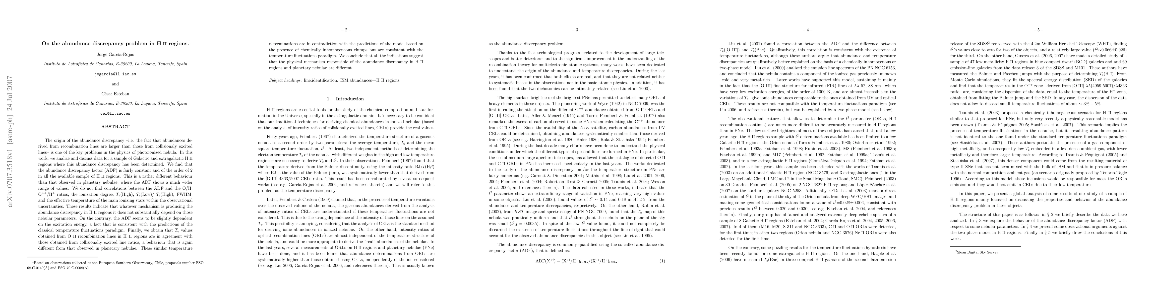 This study investigates the abundance discrepancy in HII regions, finding that the abundance discrepancy factor (ADF) is consistently around 2 across various regions, differing from the broader range in planetary nebulae. The ADF does not correlate with several nebular parameters, suggesting a different mechanism for the discrepancy in HII regions compared to planetary nebulae, potentially linked to classical temperature fluctuations.