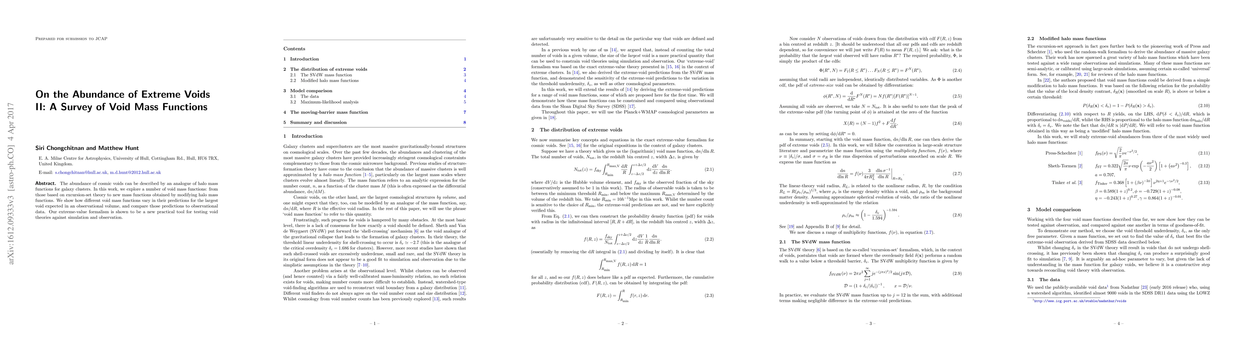 The abundance of cosmic voids can be described by an analogue of halo mass functions for galaxy clusters. In this work, we explore a number of void mass functions: from those based on excursion-set theory to new mass functions obtained by modifying halo mass functions. We show how different void mass functions vary in their predictions for the largest void expected in an observational volume, and compare those predictions to observational data. Our extreme-value formalism is shown to be a new practical tool for testing void theories against simulation and observation.