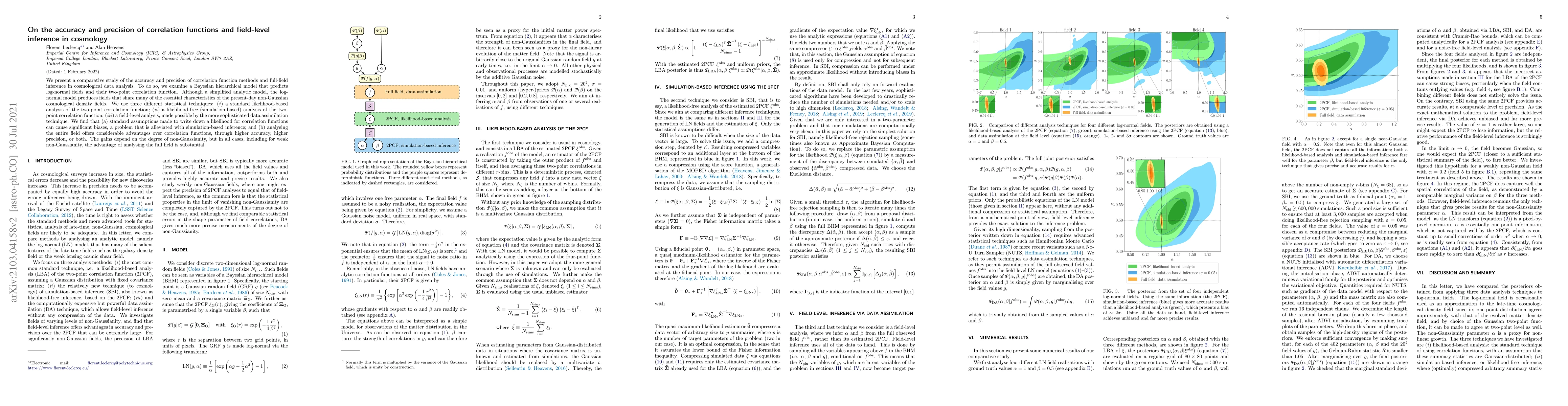This paper compares the accuracy and precision of correlation function methods and full-field inference in cosmological data analysis, finding that while standard correlation function methods can lead to significant biases, full-field analysis offers substantial improvements in accuracy and precision, especially for non-Gaussian fields.