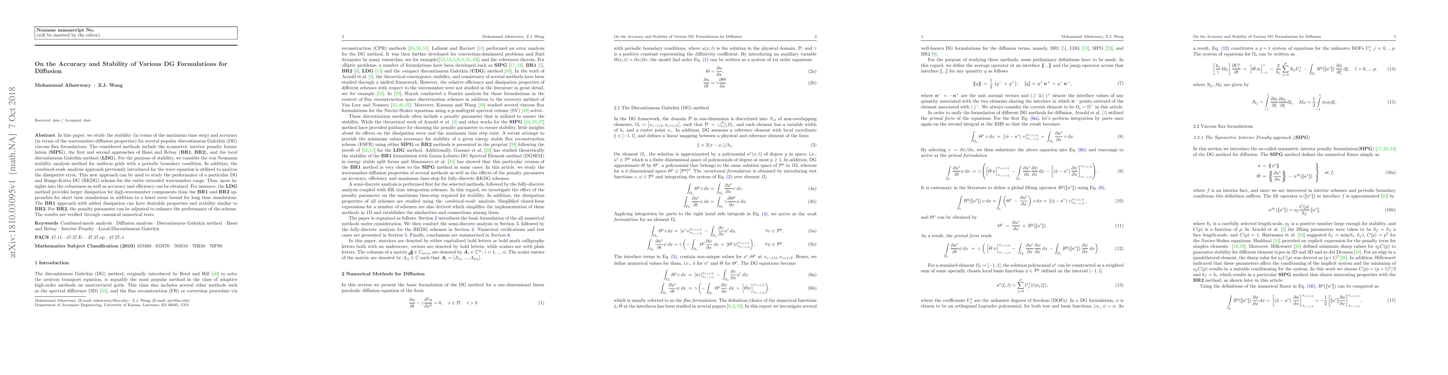 In this paper, we study the stability (in terms of the maximum time step) and accuracy (in terms of the wavenumber-diffusion properties) for several popular discontinuous Galerkin (DG) viscous flux formulations. The considered methods include the symmetric interior penalty formulation (SIPG), the first and second approaches of Bassi and Rebay (BR1, BR2), and the local discontinuous Galerkin method (LDG). For the purpose of stability, we consider the von Neumann stability analysis method for uniform grids with a periodic boundary condition. In addition, the combined-mode analysis approach previously introduced for the wave equation is utilized to analyze the dissipative error. This new approach can be used to study the performance of a particular DG and Runge-Kutta DG (RKDG) scheme for the entire extended wavenumber range. Thus, more insights into the robustness as well as accuracy and efficiency can be obtained. For instance, the LDG method provides larger dissipation for high-wavenumber components than the BR1 and BR2 approaches for short time simulations in addition to a lower error bound for long time simulations. The BR1 approach with added dissipation can have desirable properties and stability similar to BR2. For BR2, the penalty parameter can be adjusted to enhance the performance of the scheme. The results are verified through canonical numerical tests.