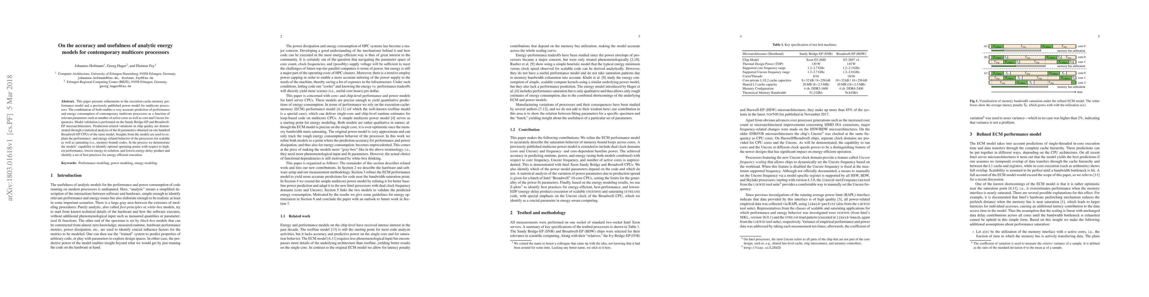 This paper refines performance and power models for multicore processors, enabling accurate predictions of their energy consumption and performance based on core activity and frequency. The models are validated on Sandy Bridge-EP and Broadwell-EP architectures, and insights are used to identify optimal operating points for energy efficiency.