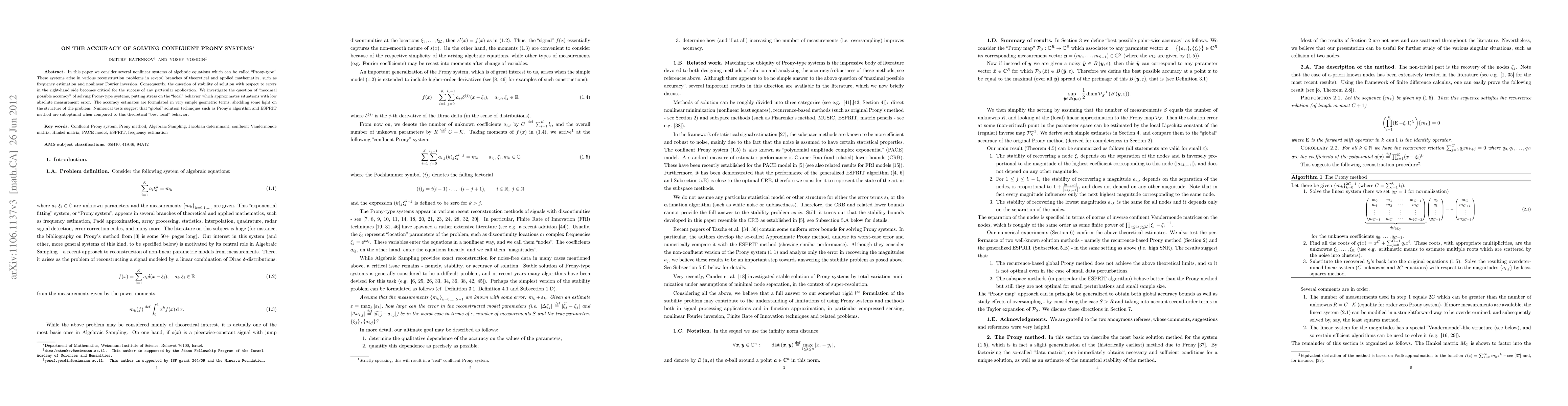 This research explores the accuracy of solving 'Prony-type' nonlinear systems, crucial in frequency estimation and nonlinear Fourier inversion. It formulates simple geometric accuracy estimates, indicating that 'global' solution methods like Prony's algorithm and ESPRIT may be suboptimal compared to the theoretically 'best local' behavior.