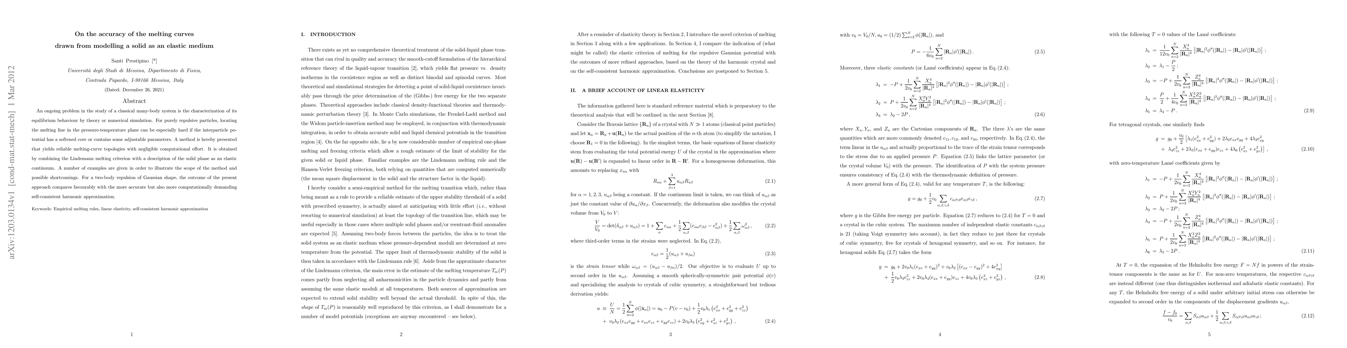 An ongoing problem in the study of a classical many-body system is the characterization of its equilibrium behaviour by theory or numerical simulation. For purely repulsive particles, locating the melting line in the pressure-temperature plane can be especially hard if the interparticle potential has a softened core or contains some adjustable parameters. A method is hereby presented that yields reliable melting-curve topologies with negligible computational effort. It is obtained by combining the Lindemann melting criterion with a description of the solid phase as an elastic continuum. A number of examples are given in order to illustrate the scope of the method and possible shortcomings. For a two-body repulsion of Gaussian shape, the outcome of the present approach compares favourably with the more accurate but also more computationally demanding self-consistent harmonic approximation.