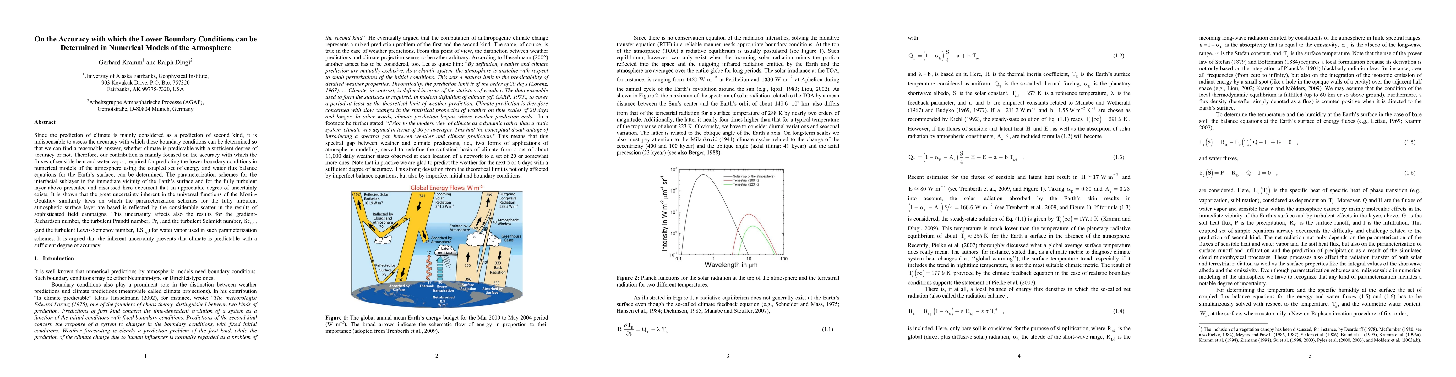 Since the prediction of climate is mainly considered as a prediction of second kind, it is indispensable to assess the accuracy with which these boundary conditions can be determined so that we can find a reasonable answer, whether climate is predictable with a sufficient degree of accuracy or not. Therefore, our contribution is mainly focused on the accuracy with which the fluxes of sensible heat and water vapor, required for predicting the lower boundary conditions in numerical models of the atmosphere using the coupled set of energy and water flux balance equations for the Earth's surface, can be determined. The parameterization schemes for the interfacial sublayer in the immediate vicinity of the Earth's surface and for the fully turbulent layer above presented and discussed here document that an appreciable degree of uncertainty exists. It is shown that the great uncertainty inherent in the universal functions of the Monin-Obukhov similarity laws on which the parameterization schemes for the fully turbulent atmospheric surface layer are based is reflected by the considerable scatter in the results of sophisticated field campaigns. This uncertainty affects also the results for the gradient-Richardson number, the turbulent Prandtl number, Pr_t, and the turbulent Schmidt number, Sc_{t,q}, (and the turbulent Lewis-Semenov number, LS_{t,q}) for water vapor used in such parameterization schemes. It is argued that the inherent uncertainty prevents that climate is predictable with a sufficient degree of accuracy.