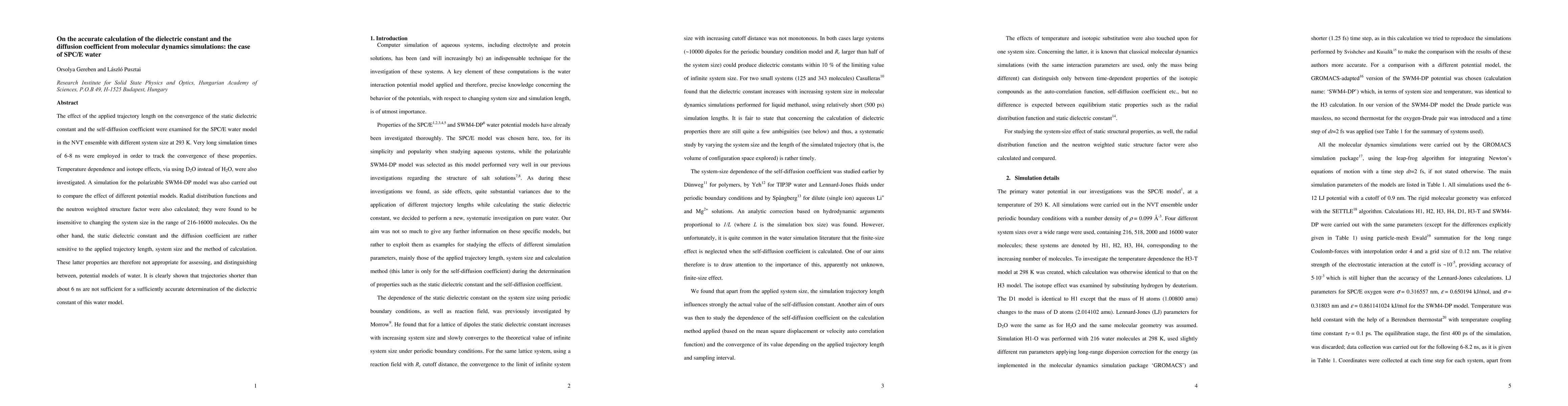This study investigates the impact of simulation length, system size, and potential models on calculating SPC/E water's dielectric constant and diffusion coefficient. Results show these properties are sensitive to trajectory length and system size, but not to system size in radial distribution functions. Shorter than 6 ns trajectories are insufficient for accurate dielectric constant determination, and these properties aren't reliable for comparing potential models of water.