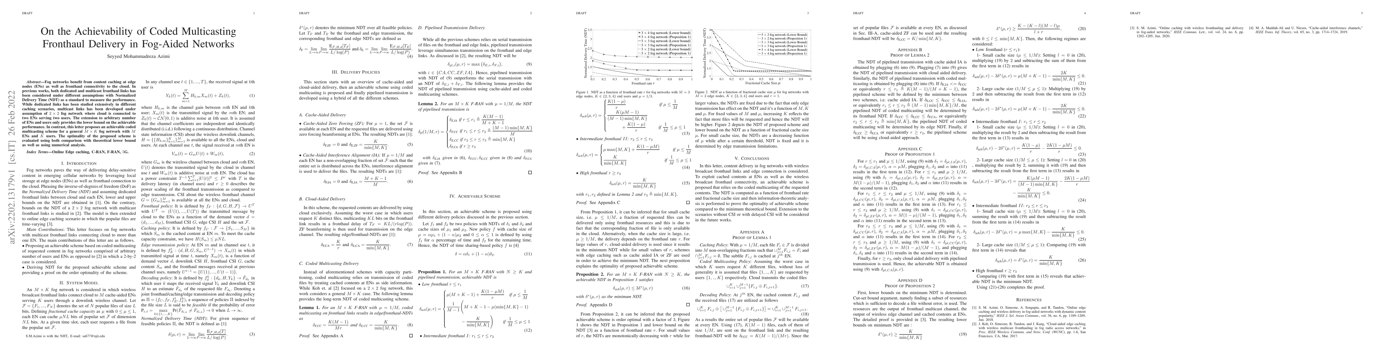 This paper proposes an achievable coded multicasting scheme for general M-by-K fog networks, extending previous work on 2-by-2 networks. The scheme's optimality is evaluated through comparison with theoretical lower bounds and numerical analysis.