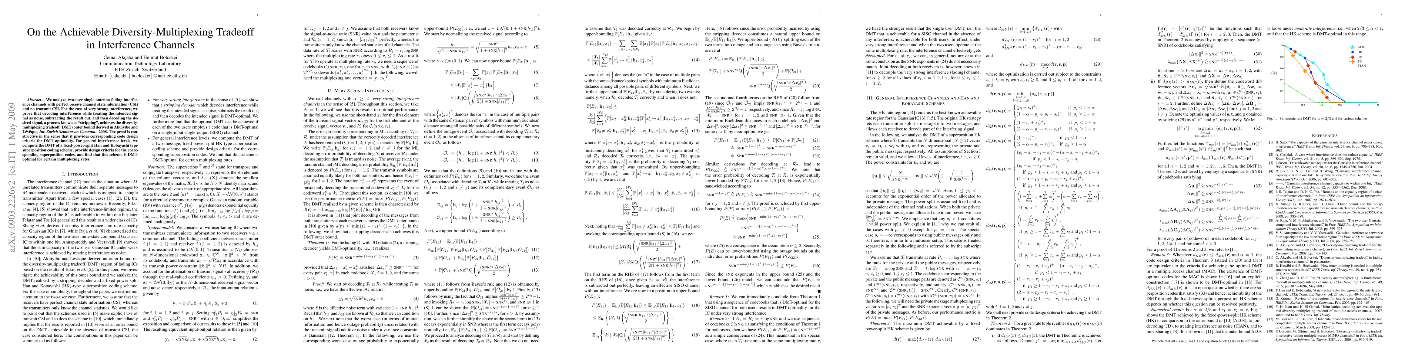 We analyze two-user single-antenna fading interference channels with perfect receive channel state information (CSI) and no transmit CSI. For the case of very strong interference, we prove that decoding interference while treating the intended signal as noise, subtracting the result out, and then decoding the desired signal, a process known as "stripping", achieves the diversity-multiplexing tradeoff (DMT) outer bound derived in Akuiyibo and Leveque, Int. Zurich Seminar on Commun., 2008. The proof is constructive in the sense that it provides corresponding code design criteria for DMT optimality. For general interference levels, we compute the DMT of a fixed-power-split Han and Kobayashi type superposition coding scheme, provide design criteria for the corresponding superposition codes, and find that this scheme is DMT-optimal for certain multiplexing rates.
