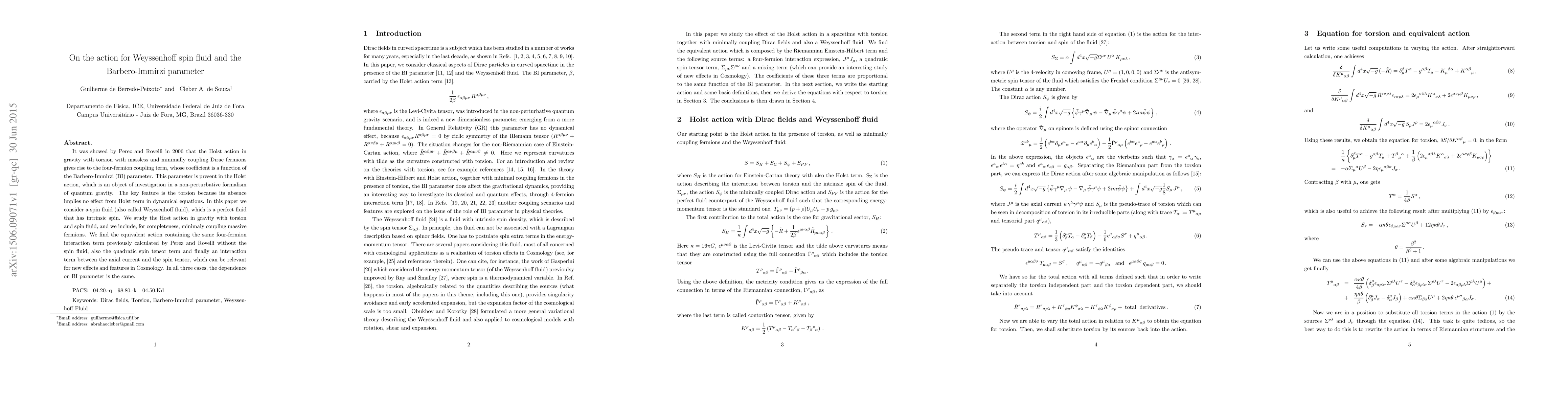 This paper investigates the Holst action in gravity with torsion and a spin fluid, finding a four-fermion interaction term dependent on the Barbero-Immirzi parameter, similar to Perez and Rovelli's 2006 work. Additional terms, like quadratic spin tensor and axial current-spin tensor interaction, are also identified, potentially impacting cosmological features.