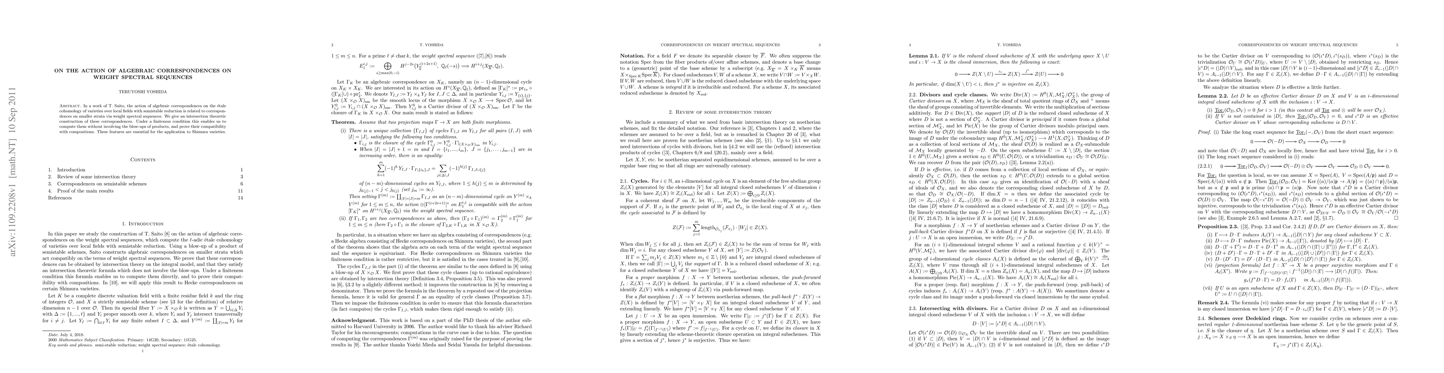 In a work of T. Saito, the action of algebraic correspondences on the etale cohomology of varieties over local fields with semistable reduction is related to correspondences on smaller strata via weight spectral sequences. We give an intersection theoretic construction of these correspondences. Under a finiteness condition this enables us to compute them without involving the blow-ups of products, and prove their compatibility with compositions. These features are essential for the application to Shimura varieties.