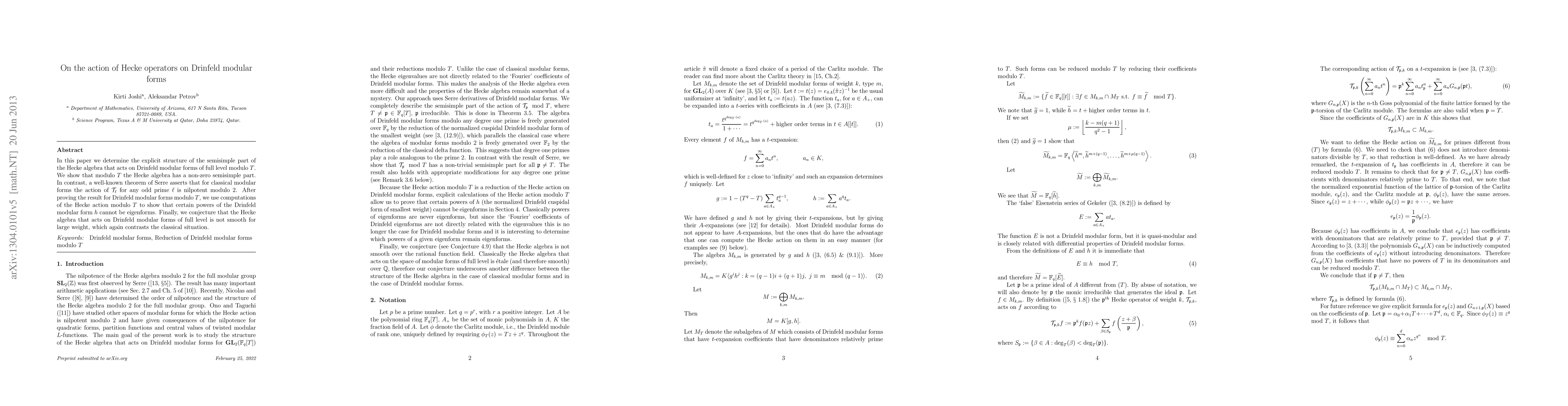This paper elucidates the semisimple structure of the Hecke algebra acting on Drinfeld modular forms, revealing forms that are not eigenforms. It conjectures that the Hecke algebra acting on full level Drinfeld modular forms is not smooth for large weights.