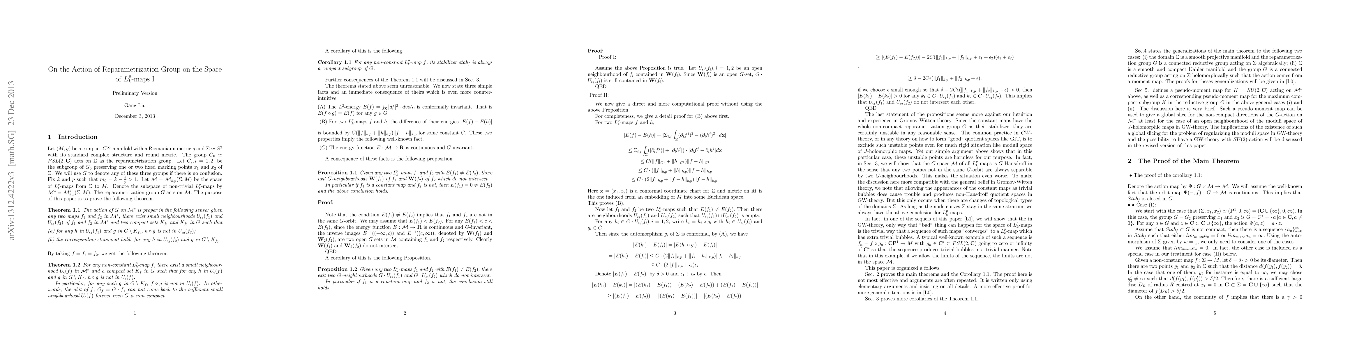 Summary: This paper demonstrates that the reparametrization group's action on the space of $L_k^p$-maps is proper. The definition and properties of $L_k^p$-maps are established within the study.