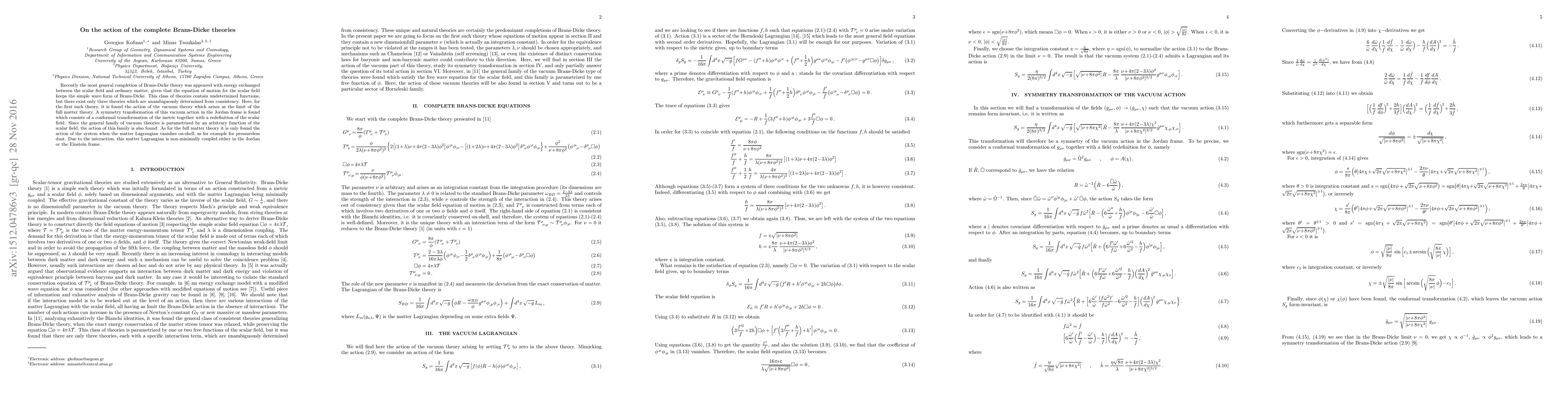 Researchers found the action of a vacuum theory that arises as a limit of Brans-Dicke matter theory, which is determined by an arbitrary function of the scalar field. This discovery provides insight into the behavior of these theories.