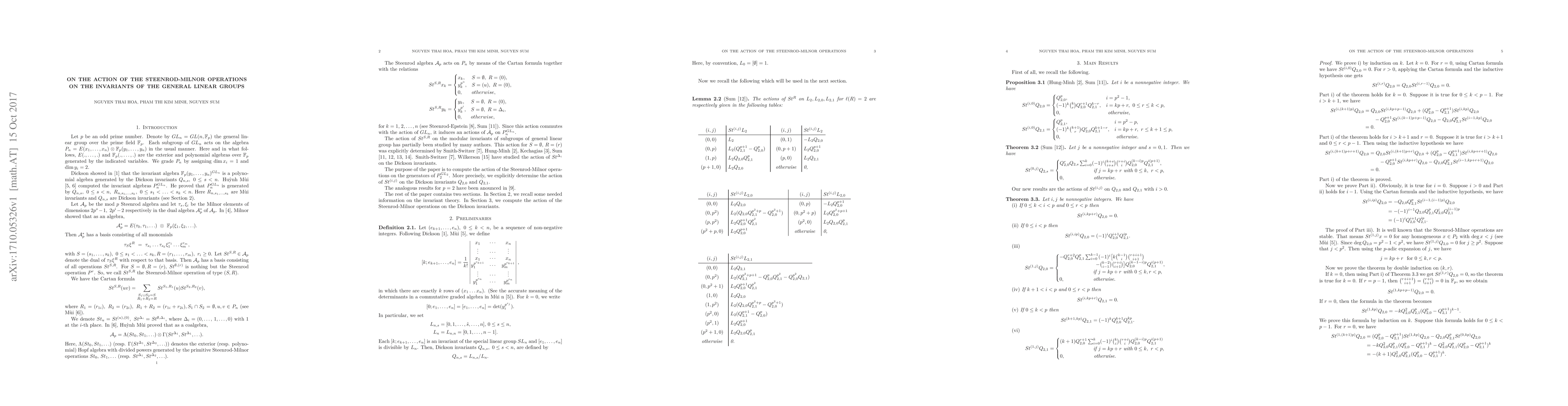 Let $p$ be an odd prime number. Denote by $GL_n = GL(n,\mathbb F_p)$ the general linear group over the prime field $\mathbb F_p$. Each subgroup of $GL_n$ acts on the algebra $P_n=E(x_1,\ldots,x_n)\otimes \mathbb F_p(y_1,\ldots,y_n)$ in the usual manner. We grade $P_n$ by assigning $\dim x_i=1$ and $\dim y_i=2.$ This algebra is a module over the mod $p$ Steenrod algebra $\mathcal A_p$. The purpose of the paper is to compute the action of the Steenrod-Milnor operations on the generators of $P_2^{GL_2}$. More precisely, we explicitly determine the action of $St^{(i,j)}$ on the Dickson invariants $Q_{2,0}$ and $Q_{2,1}$.