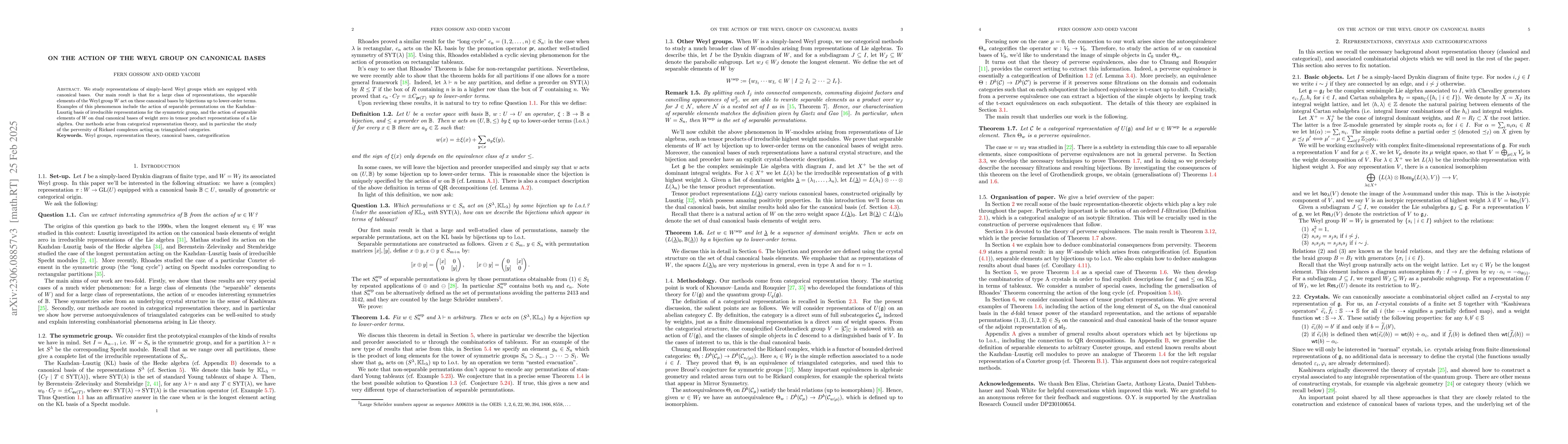 This paper investigates representations of simply-laced Weyl groups equipped with canonical bases, proving that separable elements of the Weyl group act on these bases bijectively up to lower-order terms. The study utilizes methods from categorical representation theory, particularly focusing on Rickard complexes in triangulated categories.