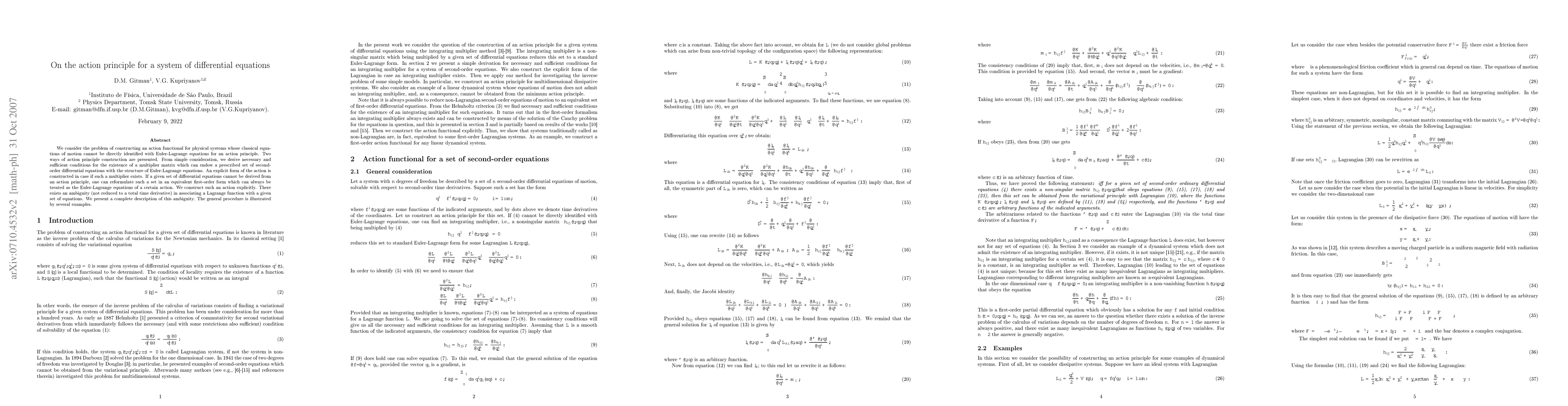 This paper explores methods to construct an action functional for physical systems where classical equations of motion do not directly correspond to Euler-Lagrange equations. It presents two approaches: one involving a multiplier matrix to derive Euler-Lagrange structure, and another reformulating a given set of differential equations into an equivalent first-order form that can be treated as Euler-Lagrange equations of a certain action.