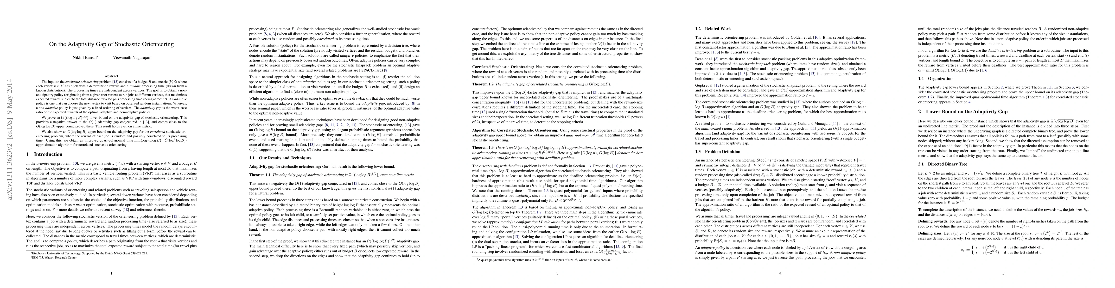 This paper investigates the adaptivity gap in the stochastic orienteering problem, proving an $\Omega(\log\log B)^{1/2}$ lower bound and an $O(\log\log B)$ upper bound on the adaptivity gap. It refutes the earlier conjecture of a constant adaptivity gap and provides an improved quasi-polynomial time approximation algorithm for correlated stochastic orienteering.