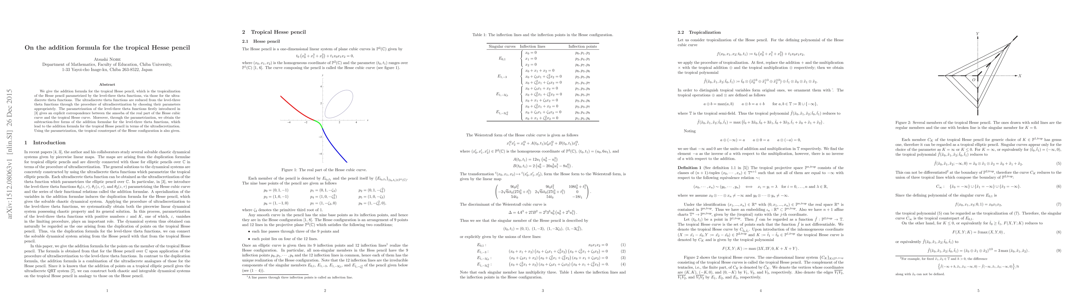 This paper provides an addition formula for the tropical Hesse pencil, derived from the tropicalization of the Hesse pencil via ultradiscretization of level-three theta functions. It establishes a correspondence between the amoeba of a Hesse cubic curve and the tropical Hesse curve, leading to subtraction-free addition formulae for the level-three theta functions.