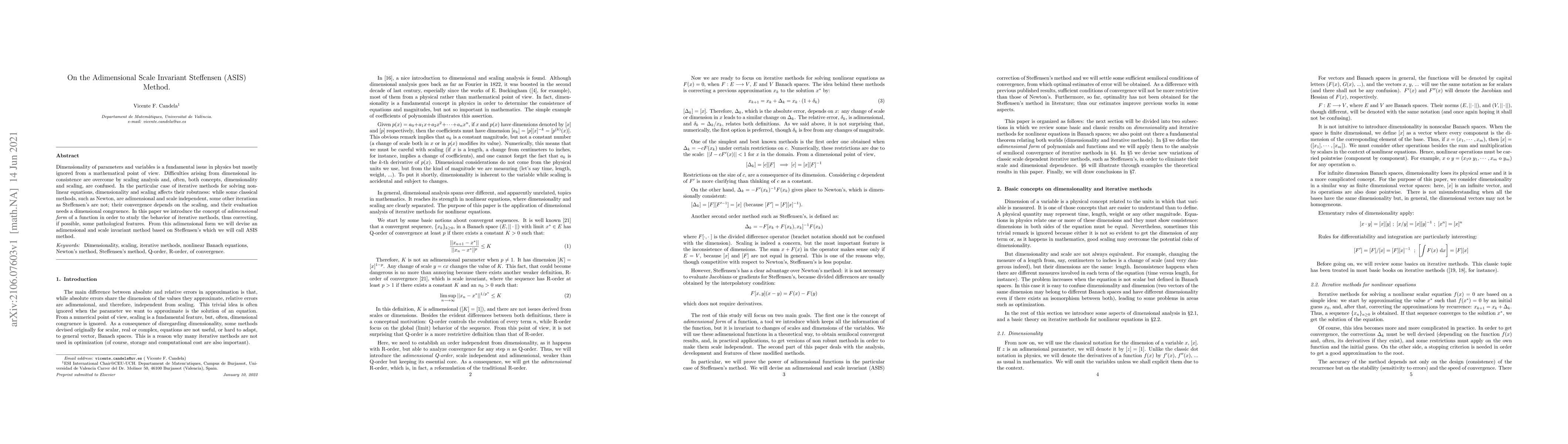 Dimensionality of parameters and variables is a fundamental issue in physics but mostly ignored from a mathematical point of view. Diffculties arising from dimensional inconsistence are overcome by scaling analysis and, often, both concepts, dimensionality and scaling, are confused. In the particular case of iterative methods for solving non-linear equations, dimensionality and scaling affects their robutness: while some classical methods, such as Newton, are adimensional and scale independent, some other iterations as Steffensen's are not; their convergence depends on the scaling, and their evaluation needs a dimensional congruence. In this paper we introduce the concept of adimensional form of a function in order to study the behavior of iterative methods, thus correcting, if possible, some pathological features. From this adimensional form we will devise an adimensional and scale invariant method based on Steffensen's which we will call ASIS method.