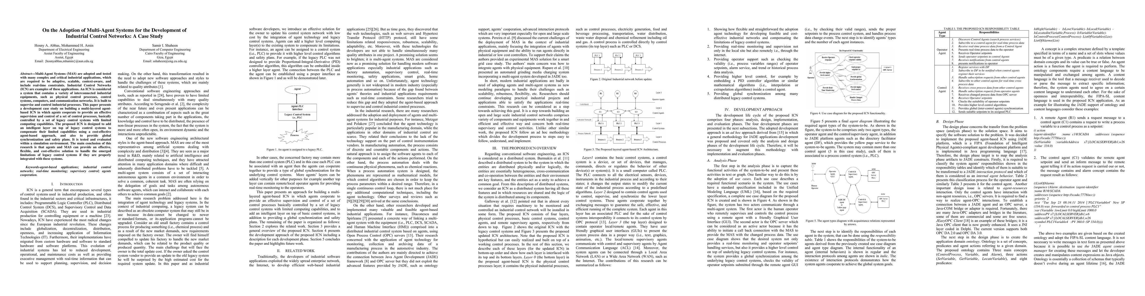 Multi-Agent Systems (MAS) are adopted and tested with many complex and critical industrial applications, which are required to be adaptive, scalable, context-aware, and include real-time constraints. Industrial Control Networks (ICN) are examples of these applications. An ICN is considered a system that contains a variety of interconnected industrial equipments, such as physical control processes, control systems, computers, and communication networks. It is built to supervise and control industrial processes. This paper presents a development case study on building a multi-layered agent-based ICN in which agents cooperate to provide an effective supervision and control of a set of control processes, basically controlled by a set of legacy control systems with limited computing capabilities. The proposed ICN is designed to add an intelligent layer on top of legacy control systems to compensate their limited capabilities using a cost-effective agent-based approach, and also to provide global synchronization and safety plans. It is tested and evaluated within a simulation environment. The main conclusion of this research is that agents and MAS can provide an effective, flexible, and cost-effective solution to handle the emerged limitations of legacy control systems if they are properly integrated with these systems.