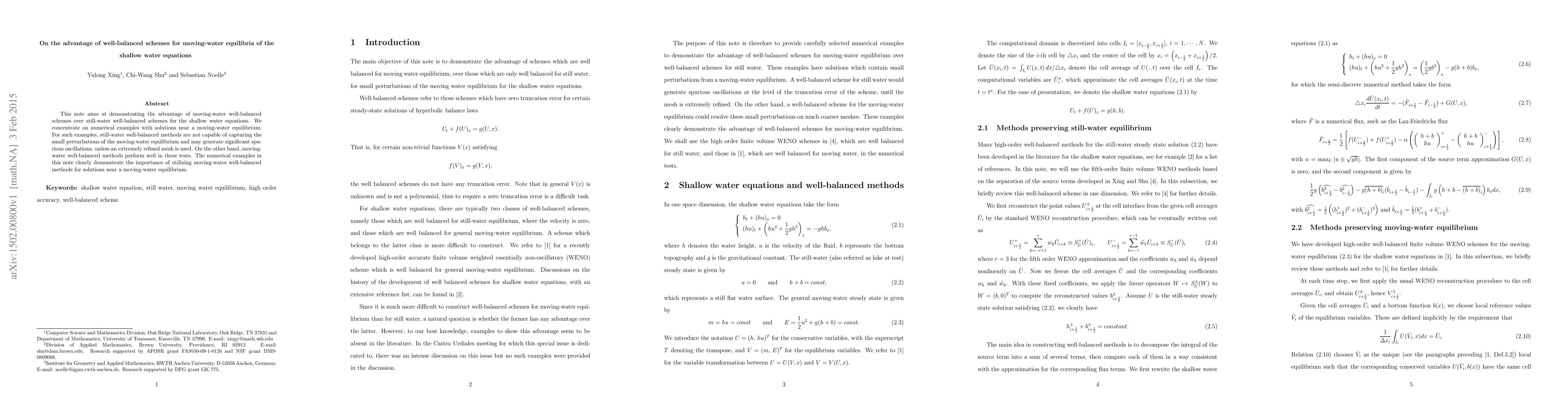 This paper demonstrates that moving-water well-balanced schemes outperform still-water schemes for shallow water equations near a moving-water equilibrium, avoiding spurious oscillations and capturing small perturbations effectively. Numerical examples highlight the necessity of using moving-water well-balanced methods for such scenarios.