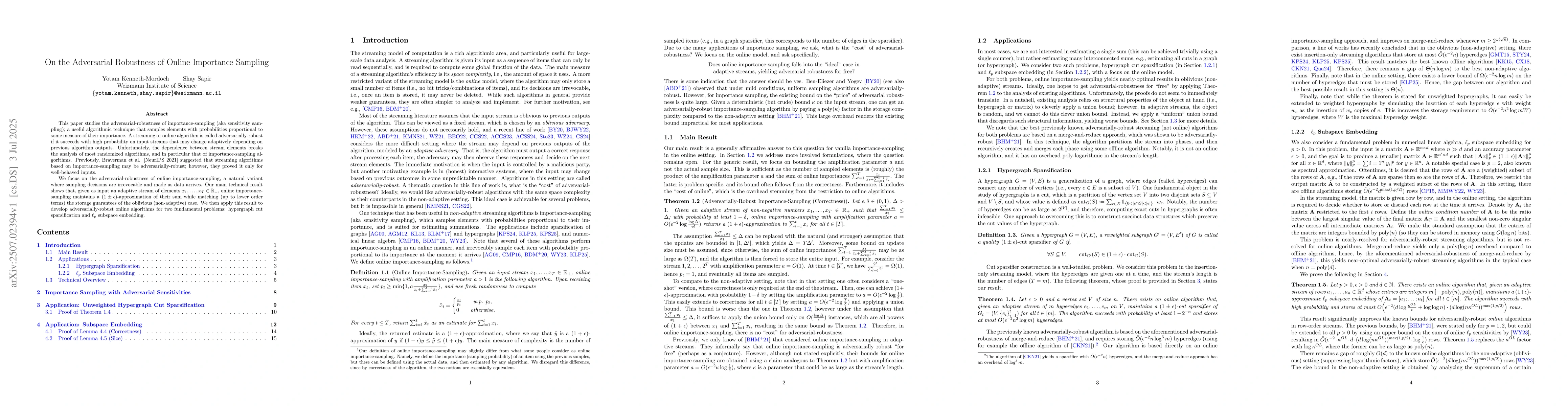 This paper studies the adversarial-robustness of importance-sampling (aka sensitivity sampling); a useful algorithmic technique that samples elements with probabilities proportional to some measure of their importance. A streaming or online algorithm is called adversarially-robust if it succeeds with high probability on input streams that may change adaptively depending on previous algorithm outputs. Unfortunately, the dependence between stream elements breaks the analysis of most randomized algorithms, and in particular that of importance-sampling algorithms. Previously, Braverman et al. [NeurIPS 2021] suggested that streaming algorithms based on importance-sampling may be adversarially-robust; however, they proved it only for well-behaved inputs. We focus on the adversarial-robustness of online importance-sampling, a natural variant where sampling decisions are irrevocable and made as data arrives. Our main technical result shows that, given as input an adaptive stream of elements $x_1,\ldots,x_T\in \mathbb{R}_+$, online importance-sampling maintains a $(1\pm\epsilon)$-approximation of their sum while matching (up to lower order terms) the storage guarantees of the oblivious (non-adaptive) case. We then apply this result to develop adversarially-robust online algorithms for two fundamental problems: hypergraph cut sparsification and $\ell_p$ subspace embedding.