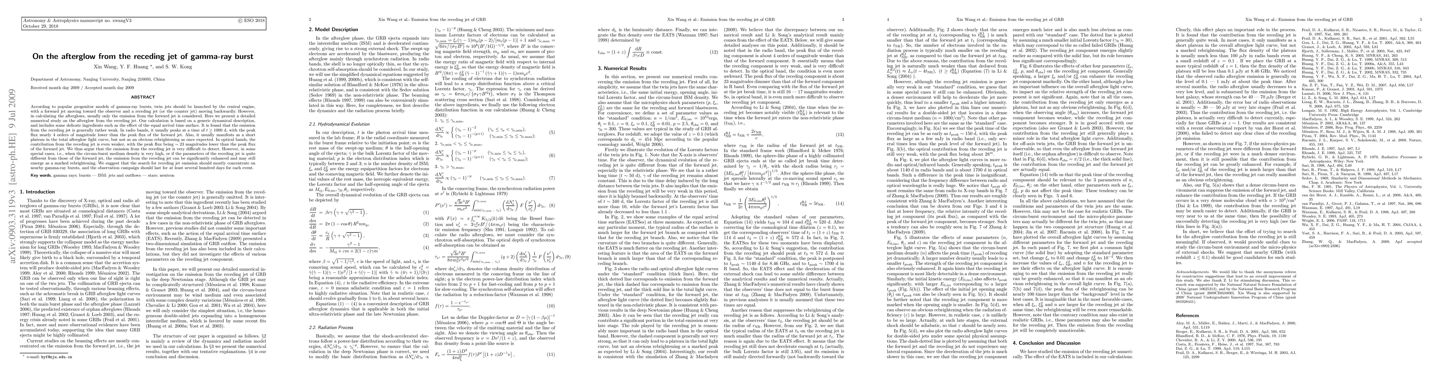 A study found that the emission from a receding jet in gamma-ray bursts is generally weak and difficult to detect, with peak fluxes nearly 4-8 orders of magnitude lower than those of the forward jet.