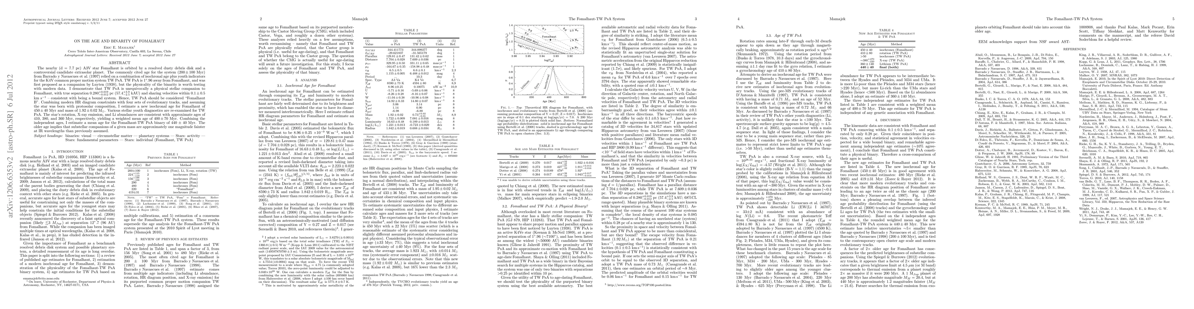 The nearby (d = 7.7 pc) A3V star Fomalhaut is orbited by a resolved dusty debris disk and a controversial candidate extrasolar planet. The commonly cited age for the system (200+-100 Myr) from Barrado y Navascues et al. (1997) relied on a combination of isochronal age plus youth indicators for the K4V common proper motion system TW PsA. TW PsA is 1.96 deg away from Fomalhaut, and was first proposed as a companion by Luyten (1938), but the physicality of the binarity is worth testing with modern data. I demonstrate that TW PsA is unequivocally a physical stellar companion to Fomalhaut, with true separation 0.280+0.019-0.012 pc (57.4+3.9-2.5 kAU) and sharing velocities within 0.1+-0.5 km/s -- consistent with being a bound system. Hence, TW PsA should be considered "Fomalhaut B". Combining modern HR diagram constraints with four sets of evolutionary tracks, and assuming the star was born with protosolar composition, I estimate a new isochronal age for Fomalhaut of 450+-40 Myr and mass of 1.92+-0.02 Msun. Various stellar youth diagnostics are re-examined for TW PsA. The star's rotation, X-ray emission, and Li abundances are consistent with approximate ages of 410, 380, and 360 Myr, respectively, yielding a weighted mean age of 400+-70 Myr. Combining the independent ages, I estimate a mean age for the Fomalhaut-TW PsA binary of 440+-40 Myr. The older age implies that substellar companions of a given mass are approximately one magnitude fainter at IR wavelengths than previously assumed.