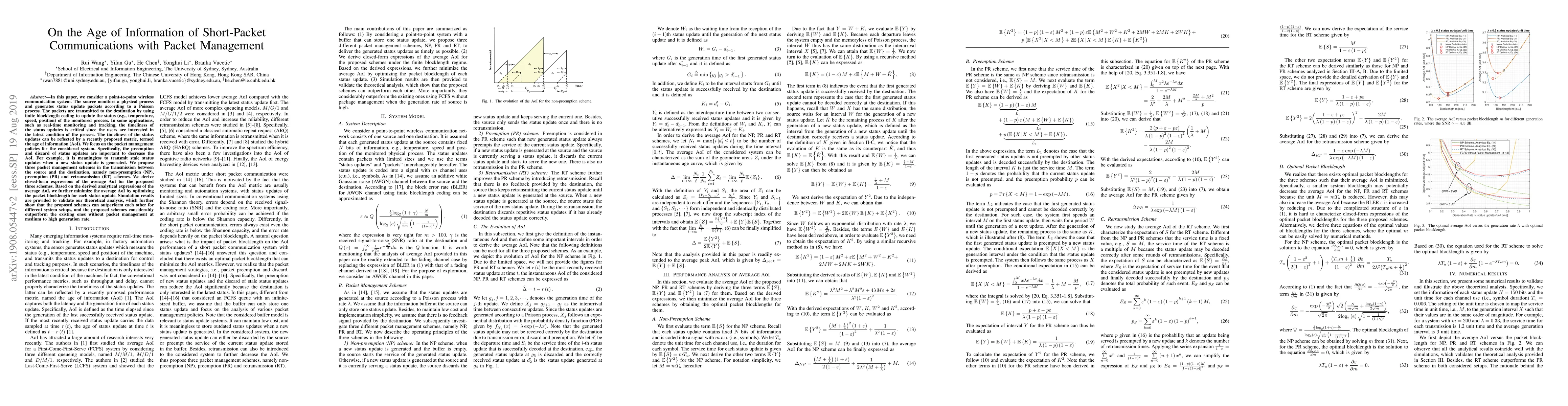This paper investigates short-packet communication systems where timely status updates are crucial, using the age of information (AoI) as a metric. It proposes three packet management schemes—non-preemption, preemption, and retransmission—and derives expressions for their average AoI. The study finds that optimized packet blocklengths can minimize AoI, with simulation results showing the proposed schemes outperform existing methods.