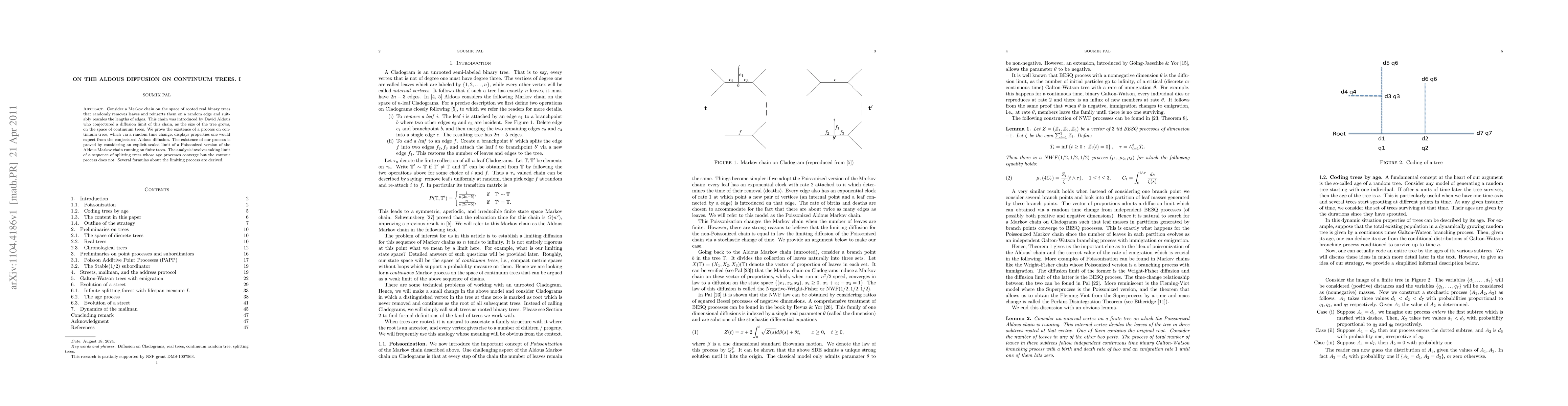 This paper proves the existence of a process on continuum trees that approximates the conjectured Aldous diffusion, established through a scaled limit of a Poissonized version of the Aldous Markov chain on finite trees, with several derived formulas characterizing the limiting process.