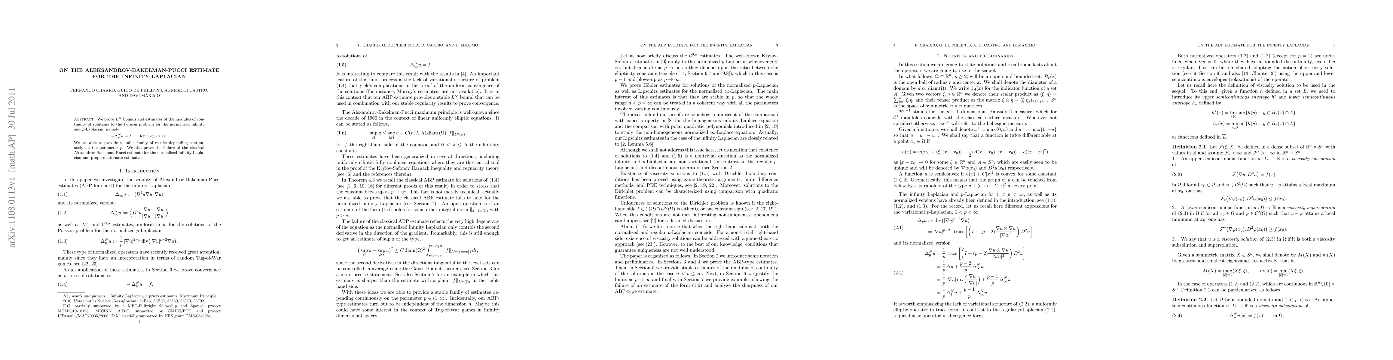 This paper establishes $L^\infty$ bounds and continuity estimates for solutions to the Poisson problem for the normalized infinity and $p$-Laplacian, providing a stable family of results dependent on $p$. It also demonstrates the failure of the classical Alexandrov-Bakelman-Pucci estimate for the normalized infinity Laplacian and suggests alternative estimates.