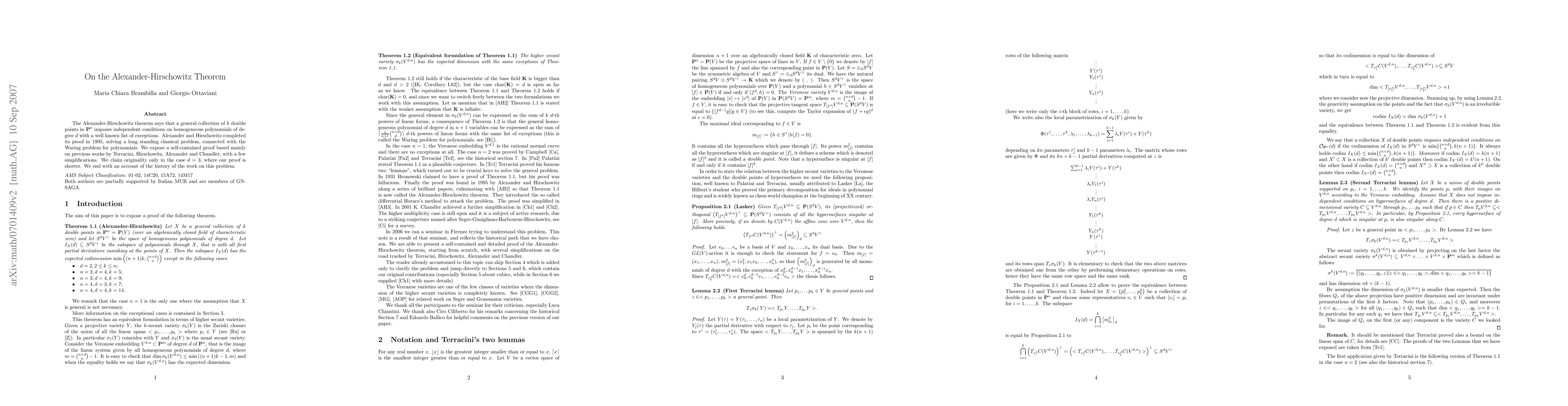 The Alexander-Hirschowitz theorem asserts that a general set of $k$ double points in ${\bf P}^n$ imposes independent conditions on degree $d$ homogeneous polynomials, with specific exceptions. The authors present a self-contained proof, simplifying previous works and providing a shorter proof for $d=3$.
