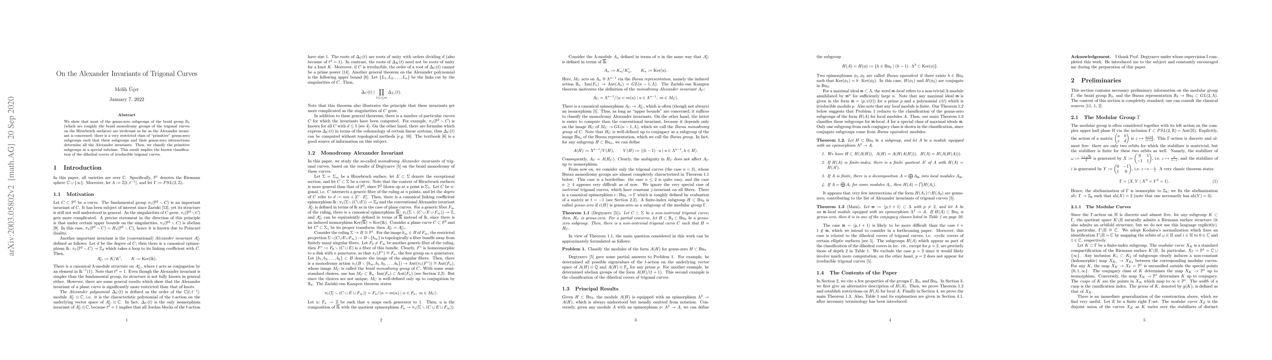 This paper demonstrates that most genus-zero subgroups of the braid group $\mathbb{B}_3$ do not influence the Alexander invariants of trigonal curves. It identifies a limited set of primitive subgroups whose intersections determine all Alexander invariants, and classifies these subgroups within a special subclass.