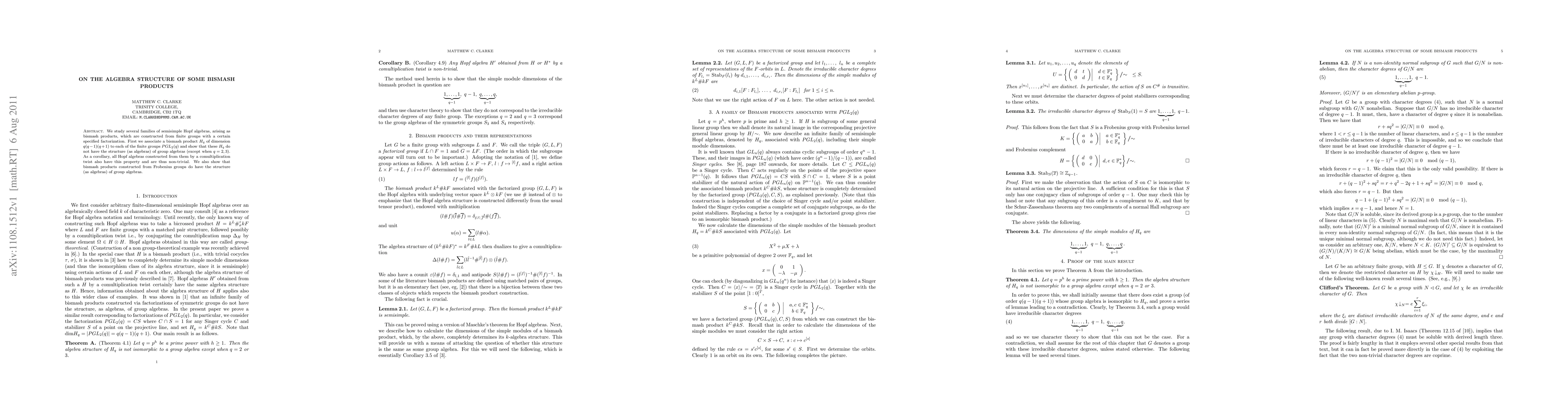 We study several families of semisimple Hopf algebras, arising as bismash products, which are constructed from finite groups with a certain specified factorization. First we associate a bismash product $H_q$ of dimension $q(q-1)(q+1)$ to each of the finite groups $PGL_2(q)$ and show that these $H_q$ do not have the structure (as algebras) of group algebras (except when $q =2,3$). As a corollary, all Hopf algebras constructed from them by a comultiplication twist also have this property and are thus non-trivial. We also show that bismash products constructed from Frobenius groups do have the structure (as algebras) of group algebras.