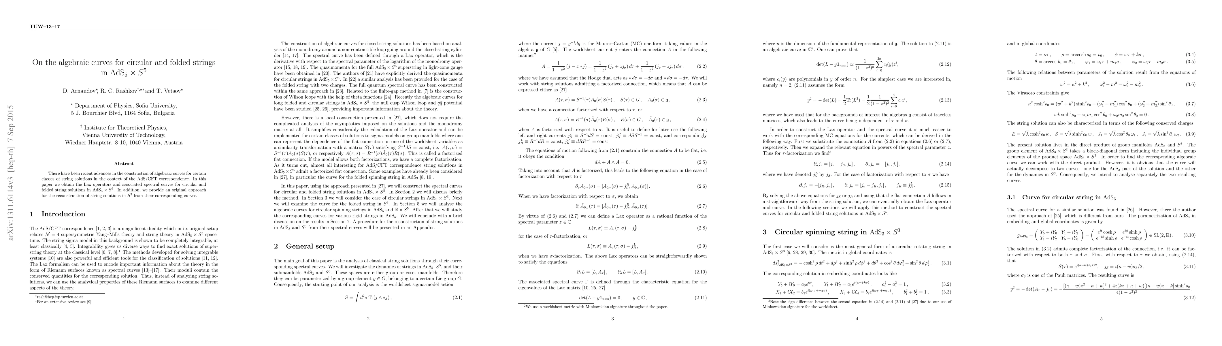Researchers developed algebraic curves for circular and folded strings in AdS_5 x S^5, enabling the reconstruction of string solutions in S^3.