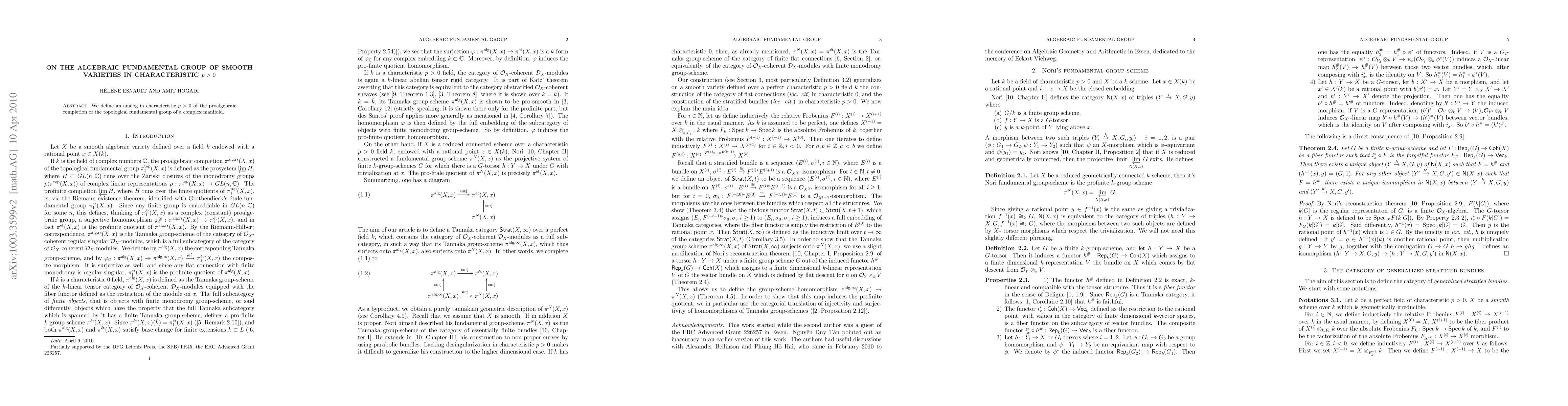 Summary: This paper defines a proalgebraic analog of the topological fundamental group for smooth varieties in characteristic $p>0$. It aims to extend the concept of algebraic fundamental groups to positive characteristic settings.
