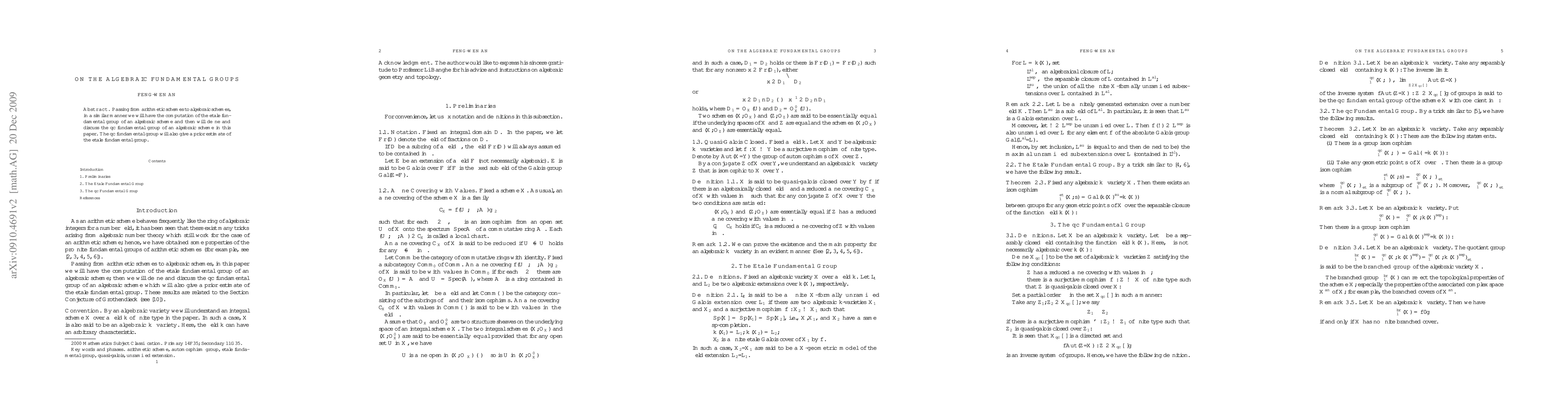 This paper explores algebraic fundamental groups of schemes, introducing a new concept called the qc fundamental group that provides an estimate for the etale fundamental group.