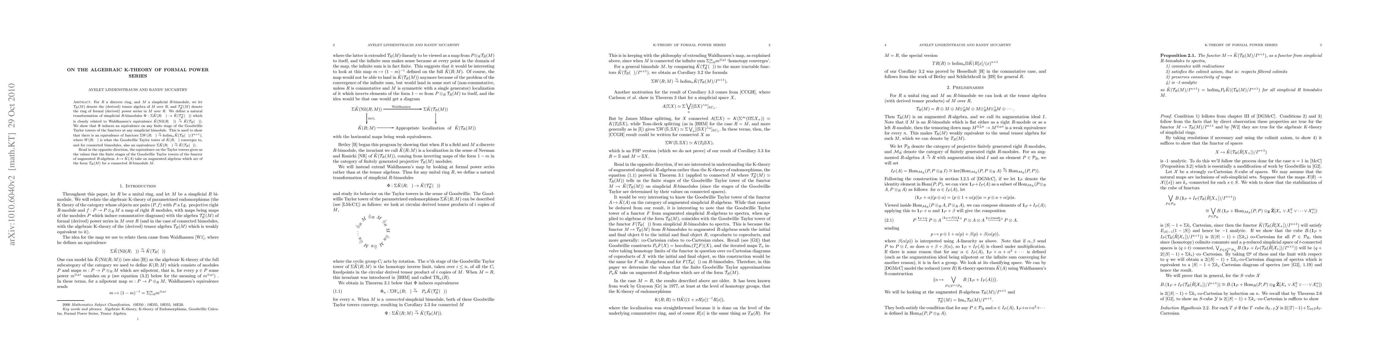 This paper extends Waldhausen's equivalence to the K-theory of the tensor algebra of an R-bimodule M, establishing a map from the K-theory of formal power series to the K-theory of parametrized endomorphisms. This map induces an equivalence in the Goodwillie Taylor tower, particularly when M is connected.