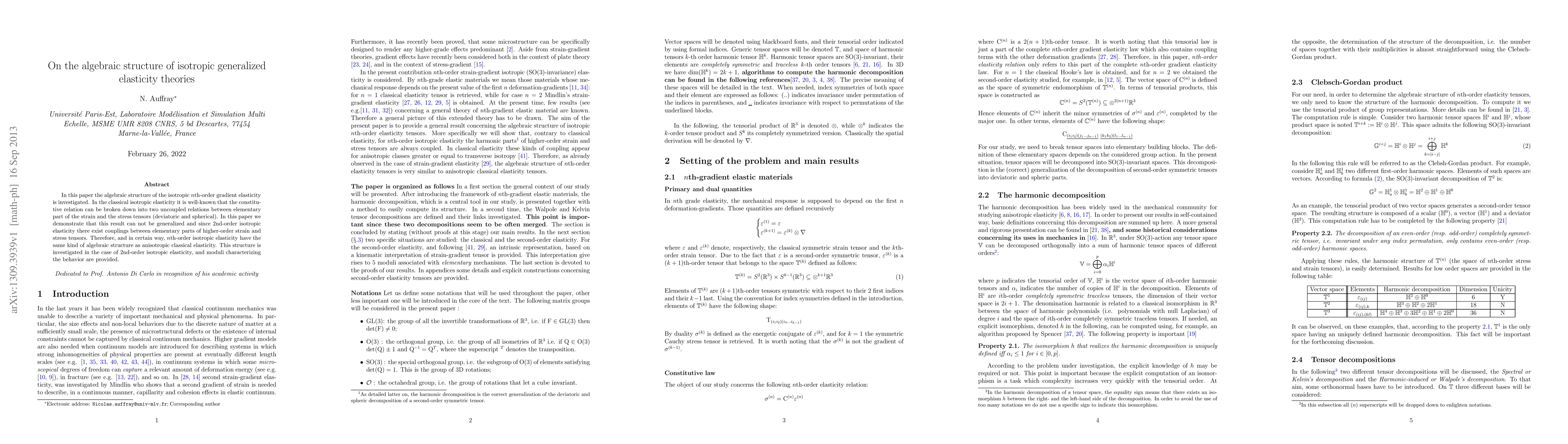 This paper investigates the algebraic structure of isotropic nth-order gradient elasticity, revealing that unlike classical isotropic elasticity, higher-order isotropic elasticity exhibits couplings between deviatoric and spherical components, akin to anisotropic elasticity. The study focuses on 2nd-order isotropic elasticity, providing moduli that characterize this new algebraic structure.